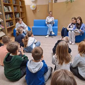 30 października 2025 r. rozpoczęła się nowa inicjatywa biblioteki szkolnej Starsi czytają młodszym. Akcja łączy uczniów i promuje wartościowe nawyki czytelnicze. Uczennice z koła języka polskiego wraz z p. Dagmarą Litwin zainaugurowały cykl regularnych spotkań czytelniczych z młodszymi kolegami. Na pierwszym spotkaniu świetliczaki wysłuchały wierszy Jan Brzechwy i Juliana Tuwima. Dzieci z klas młodszych rozwijają umiejętność koncentracji, uczą się słuchania ze zrozumieniem, a także zyskują nowe doświadczenia związane z literaturą. Z kolei starsi uczniowie mają okazję doskonalić swoje umiejętności komunikacyjne, płynne czytanie, a także zdobywać doświadczenie w wystąpieniach publicznych.