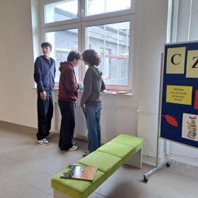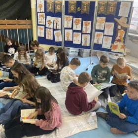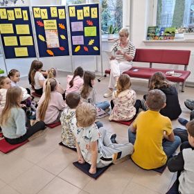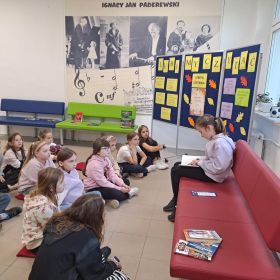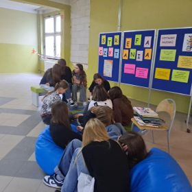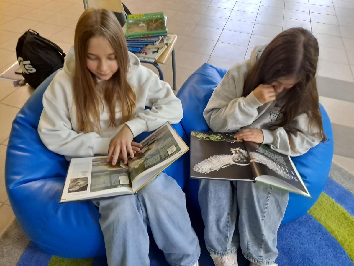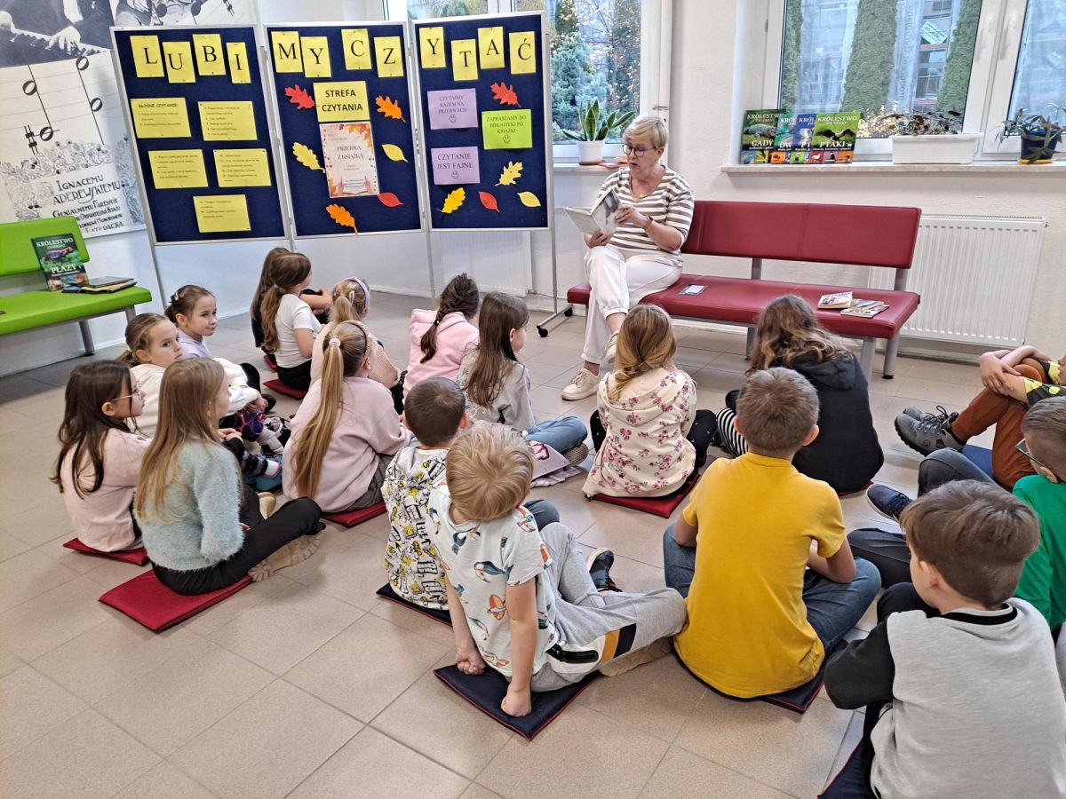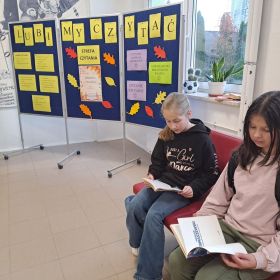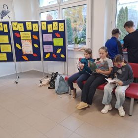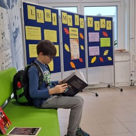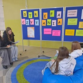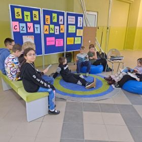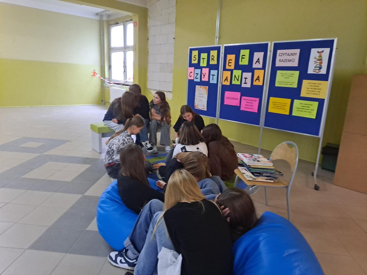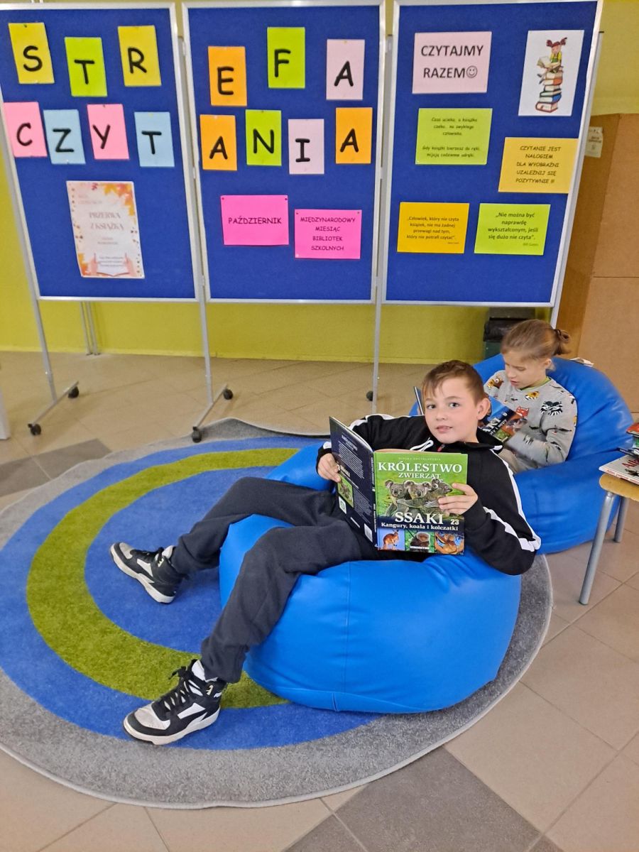 3 listopada 2025 r. w ramach obchodów Międzynarodowego Miesiąca Bibliotek Szkolnych w naszej szkole odbyła się akcja czytelnicza Przerwa z książką. Nauczyciele bibliotekarze przygotowali na korytarzach strefy czytania, w których uczniowie podczas przerw mogli oddać się ulubionej lekturze. Celem akcji była promocja czytelnictwa wśród dzieci i młodzieży, integracja środowiska lokalnego, pokazanie uczniom, że czytanie jest ciekawe oraz zachęcenie uczniów do sięgania po książkę w każdej sytuacji i w każdym miejscu. To był wesoły dzień pełen wrażeń.