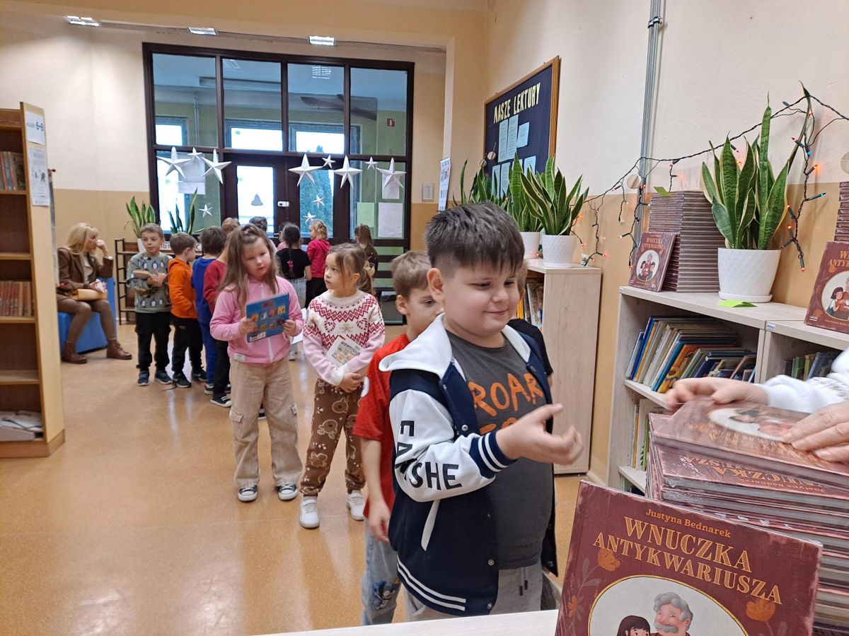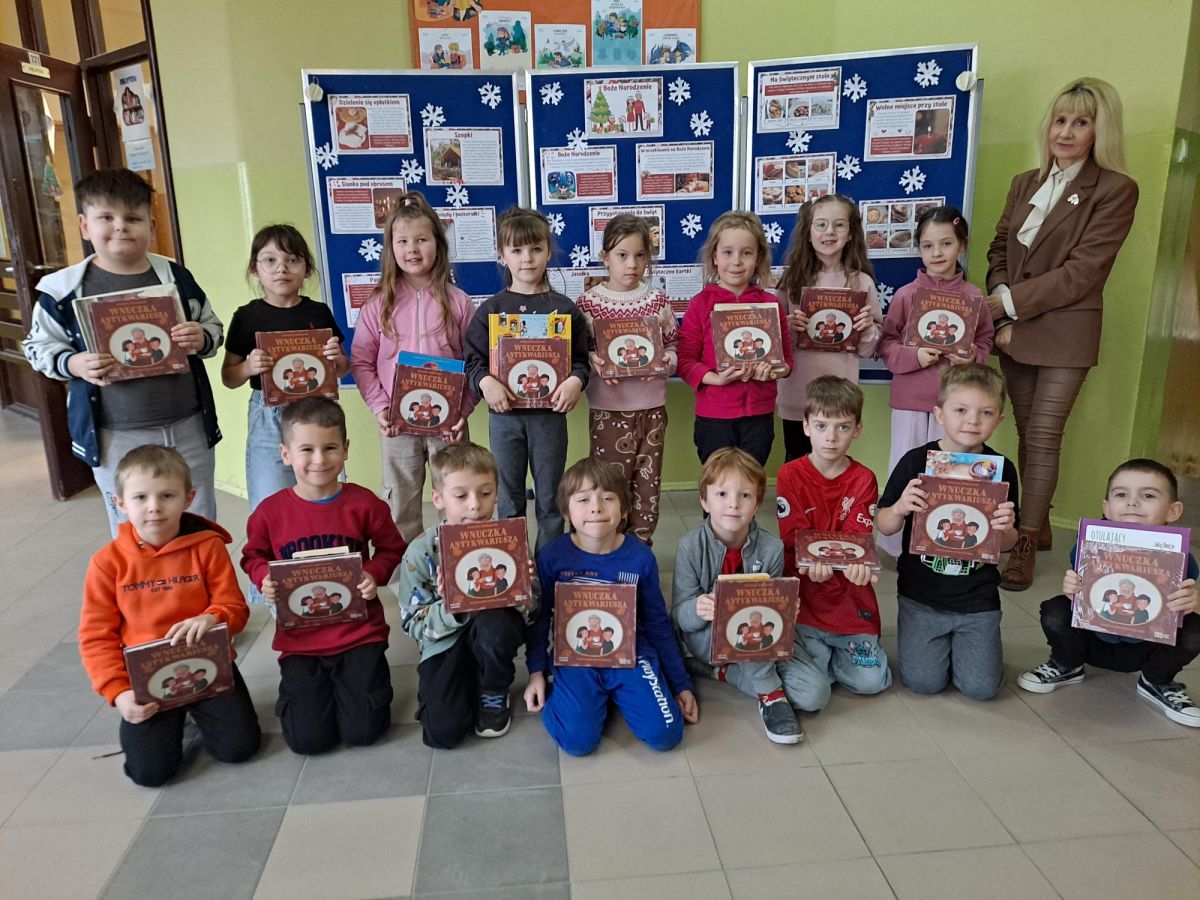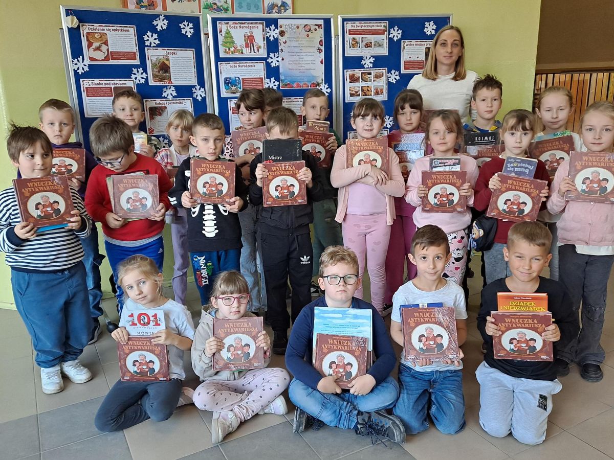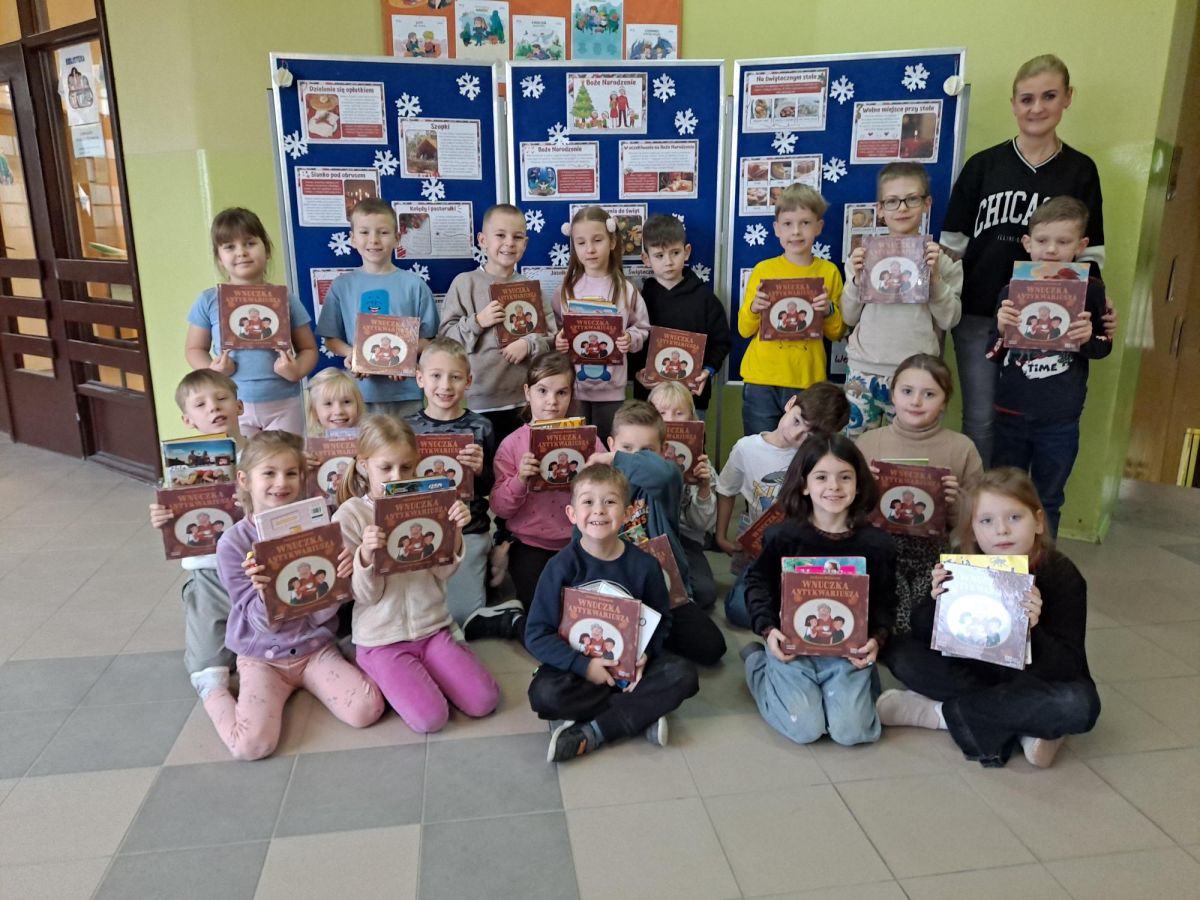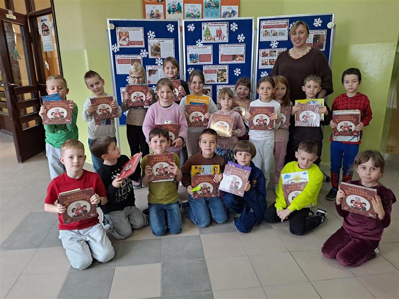 15 grudnia 2025 r. nauczyciele pracujący w szkolnej bibliotece zaprosili pierwszaki po odbiór upominków książkowych. Były to wyprawki czytelnicze dla uczniów, przekazane przez Instytut Książki w ramach kampanii Mała książka – wielki człowiek, której celem jest promocja czytelnictwa wśród dzieci rozpoczynających naukę w szkole podstawowej. Projekt ma charakter ogólnopolski, jest realizowany ze środków Ministerstwa Kultury i Dziedzictwa Narodowego. Celem kampanii jest zachęcenie do częstego sięgania po książki oraz regularnego czytania, zarówno samodzielnego, jak i z udziałem najbliższych – rodziców, dziadków, rówieśników, opiekunów a także nauczycieli.