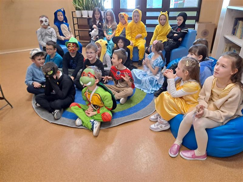 5 listopada 2025 roku obchodzony jest Międzynarodowy Dzień Postaci z Bajek. Jest to wyjątkowe święto, które pozwala nam na chwilę oderwać się od rzeczywistości i zanurzyć w świecie baśni. Nauczyciele bibliotekarze zaprosili do biblioteki drugoklasistów, aby wspólnie celebrować ten dzień. Uczniowie przebrani za kolorowe postaci, za pomocą czarodziejskiej formuły, udali się do krainy bajek, gdzie czekały na nich zadania do wykonania. Wszyscy uczestnicy wzorowo poradzili sobie z odgadywaniem zagadek, rozpoznawaniem bajkowych rekwizytów, jak również oddzielaniem grochu od fasoli. Podczas obchodów tego święta dzieci miały okazję bliższego poznania postaci z bajek, które często stają się ich przyjaciółmi i przewodnikami po świecie fantazji.
