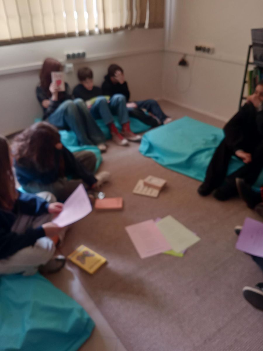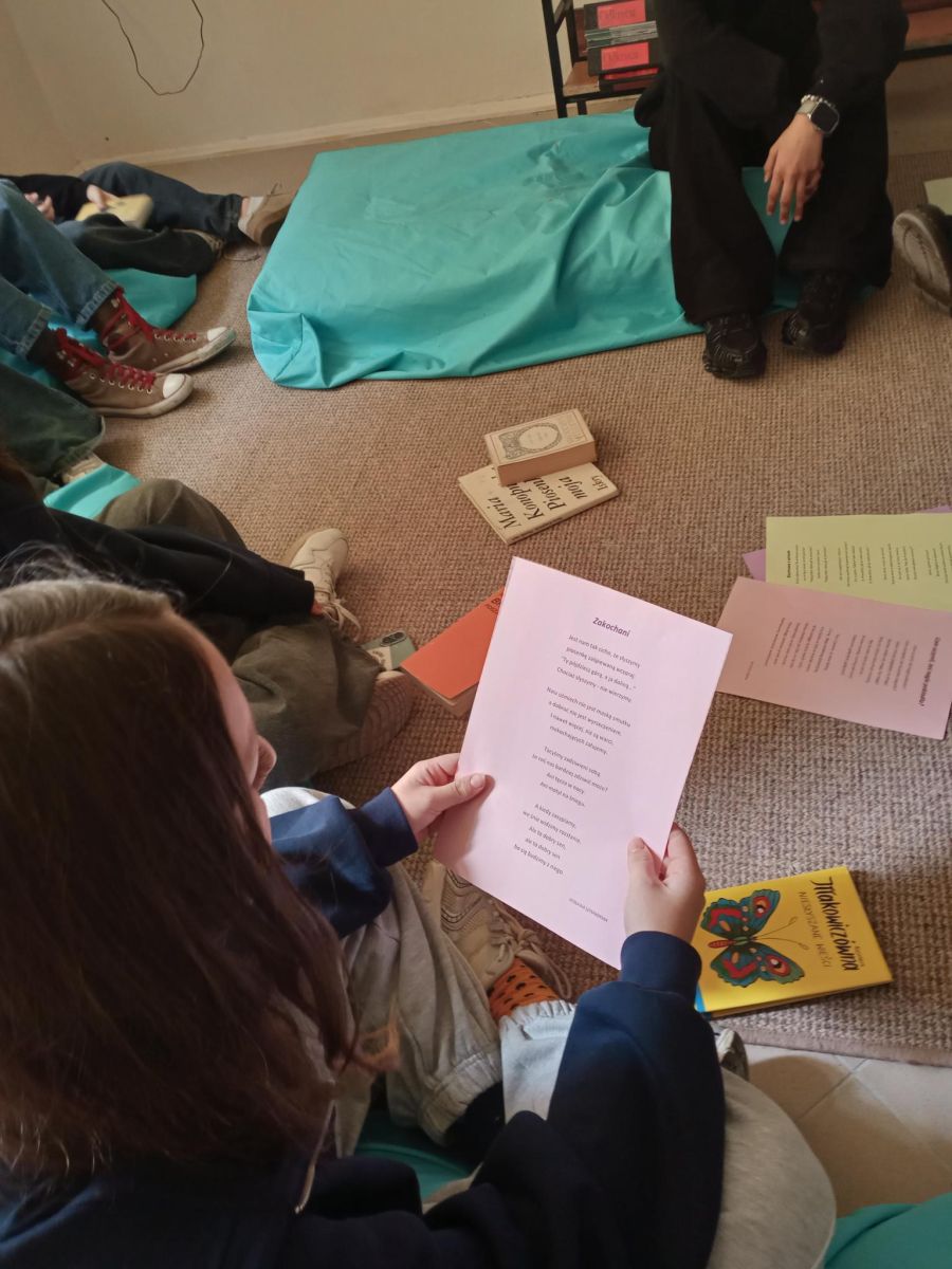 20 marca 2026 r. w przeddzień Światowego Dnia Poezji w czytelni szkolnej odbyło się spotkanie z poezją. Czytanie wierszy Wisławy Szymborskiej, Bolesława Leśmiana Marii Pawlikowskiej – Jasnorzewskiej i innych poetów wprowadziło uczniów w świat wyobraźni i emocji. Podczas spotkania młodzież mówiła o swoich odczuciach, o tym, że krótkie wersy, metafory i rytm potrafią uchwycić uczucia w sposób bardziej intensywny niż zwykły tekst. Nauczyciel bibliotekarz przedstawił interpretacje omawianych utworów przez współczesnych artystów, takich jak Marek Grechuta, Sanah czy Dawid Kwiatkowski.