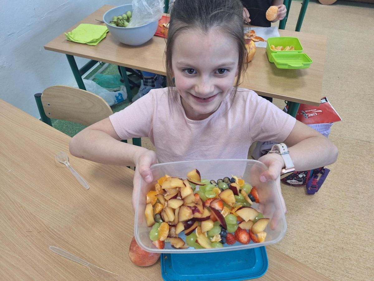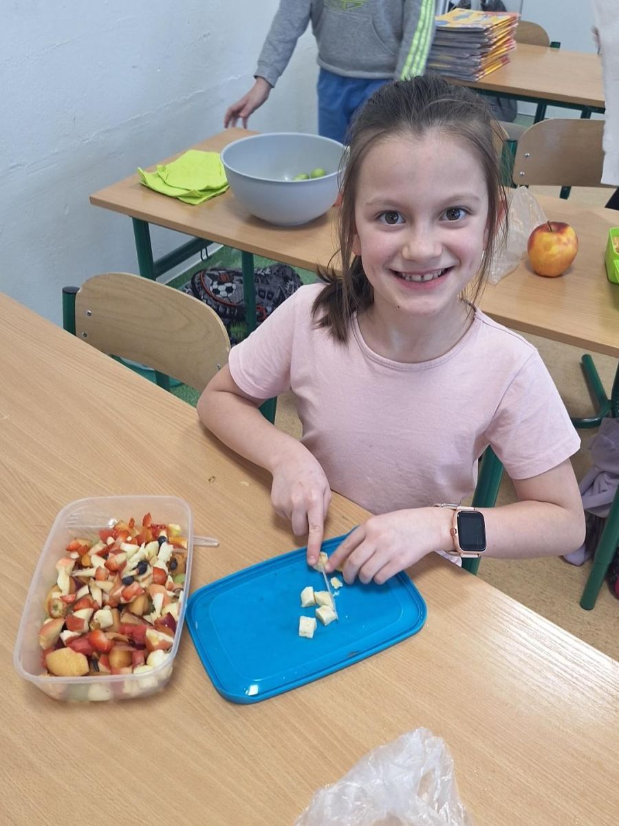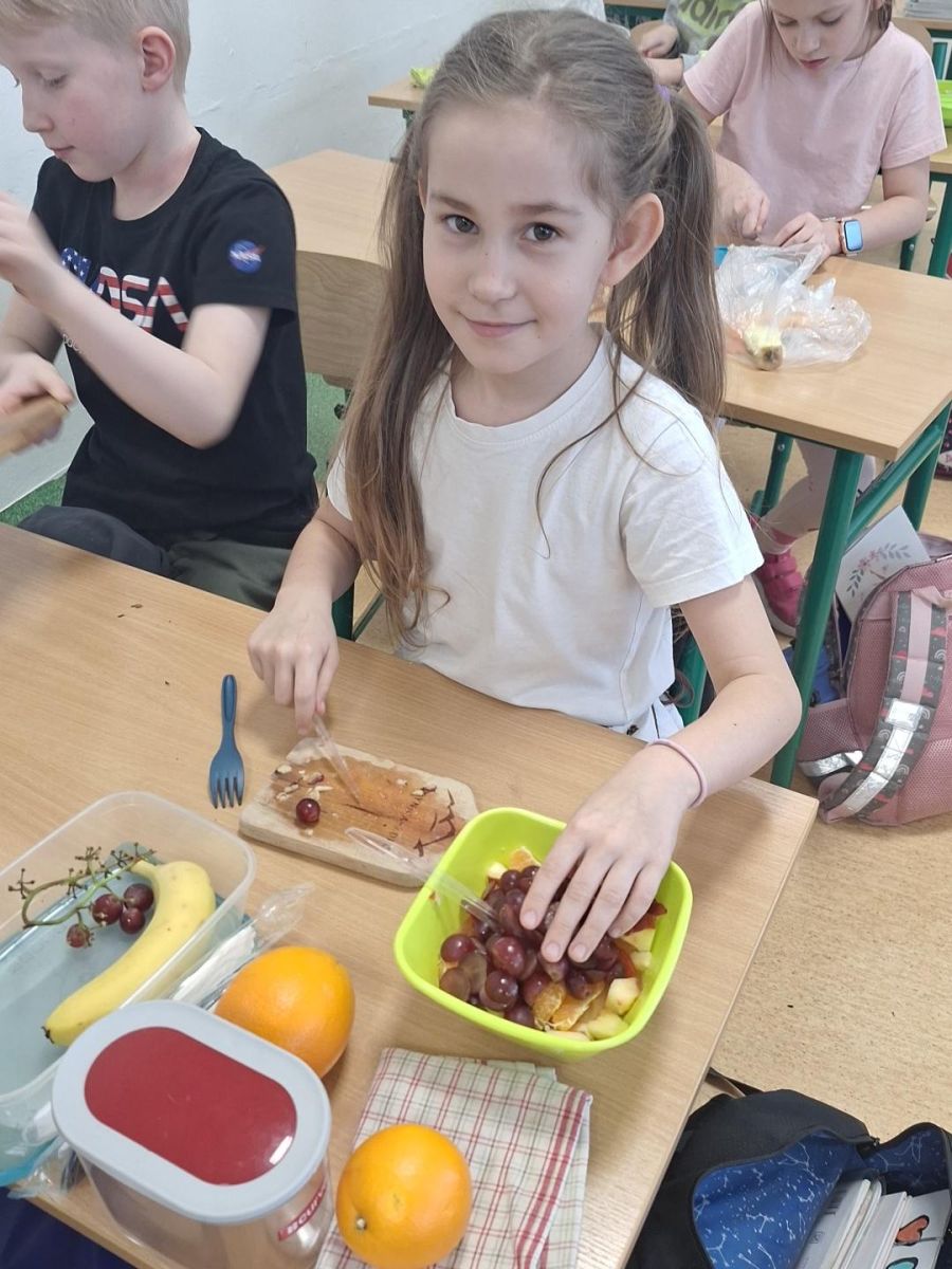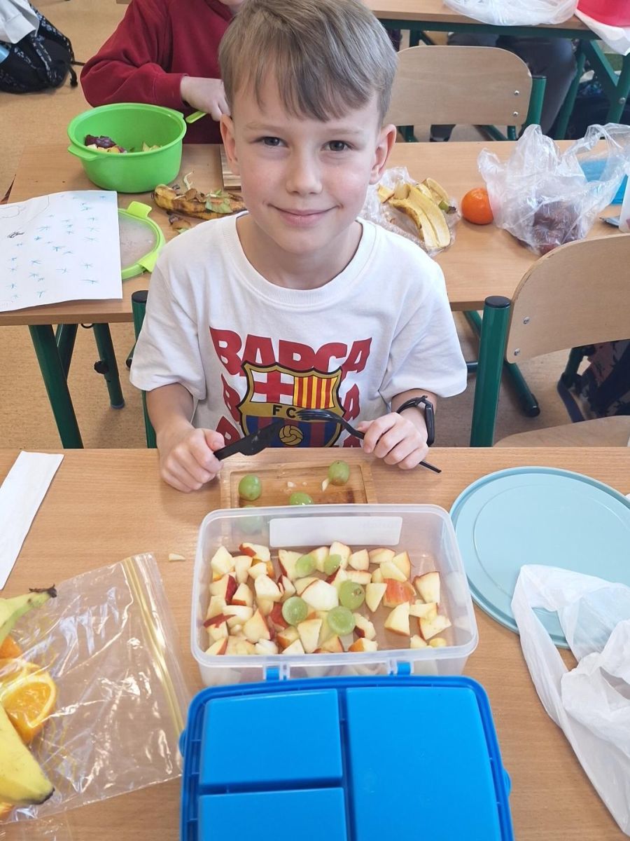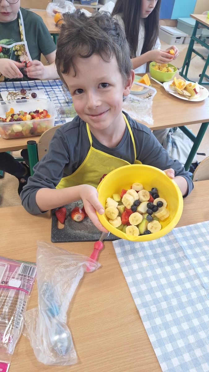Zajęcia te były jednocześnie podsumowaniem bloku tematycznego „Bądźmy zdrowi”, w ramach którego uczniowie poznawali zasady zdrowego odżywiania i dbania o własne zdrowie. Wykonanie sałatki owocowej stało się doskonałą okazją do praktycznego utrwalenia zdobytej wiedzy o wartościach odżywczych świeżych owoców oraz znaczeniu różnorodnej diety.
