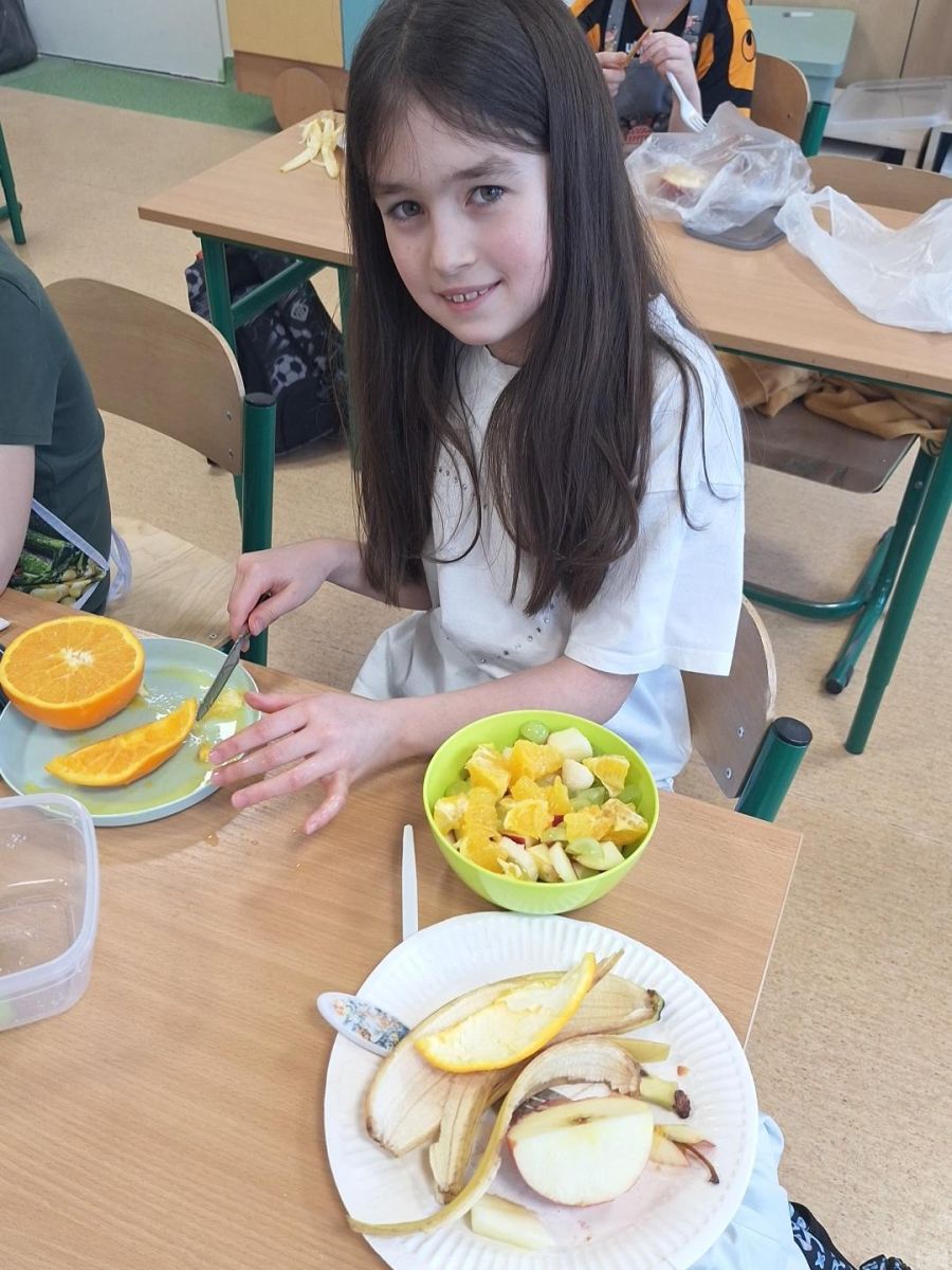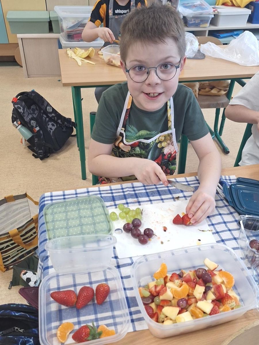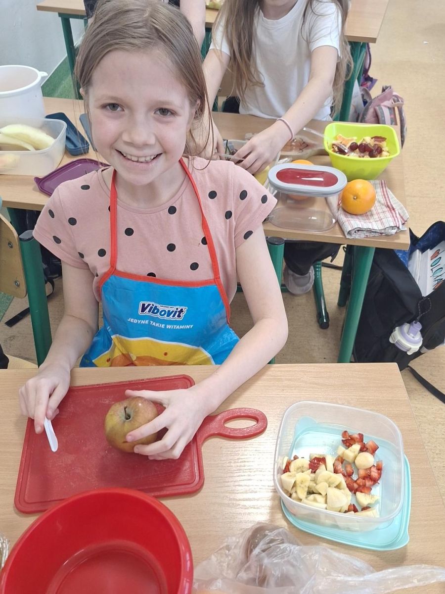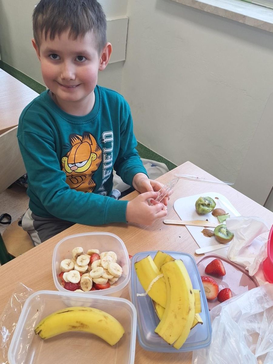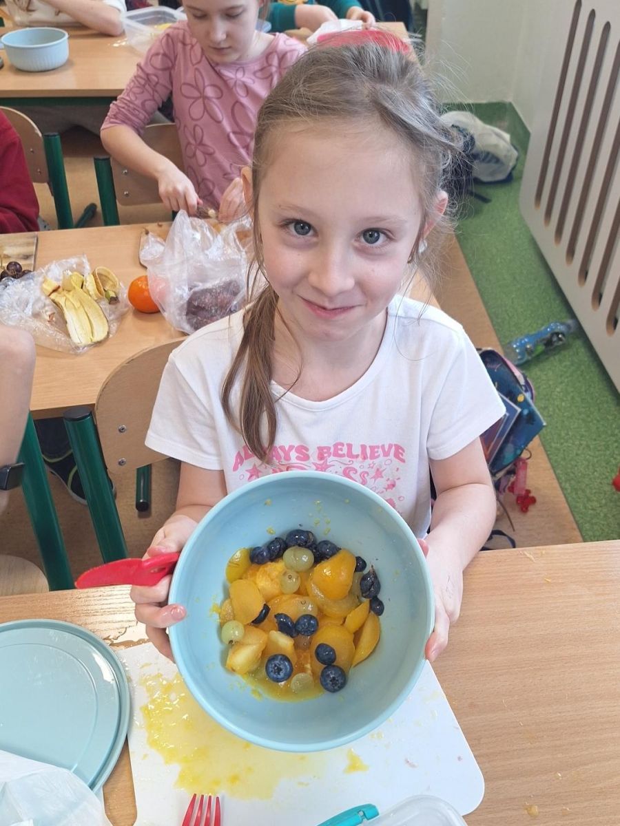 Zajęcia te były jednocześnie podsumowaniem bloku tematycznego „Bądźmy zdrowi”, w ramach którego uczniowie poznawali zasady zdrowego odżywiania i dbania o własne zdrowie. Wykonanie sałatki owocowej stało się doskonałą okazją do praktycznego utrwalenia zdobytej wiedzy o wartościach odżywczych świeżych owoców oraz znaczeniu różnorodnej diety.