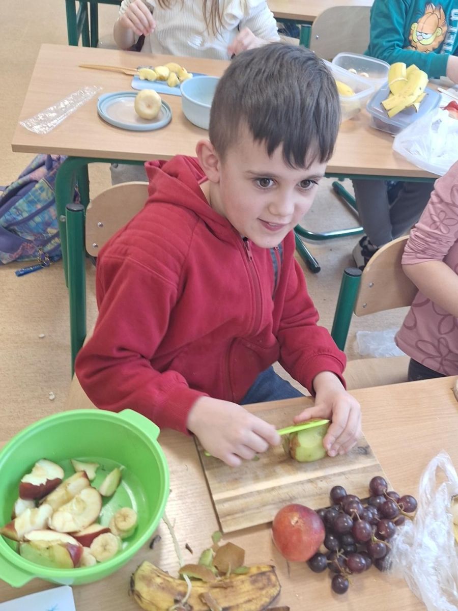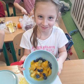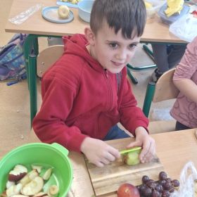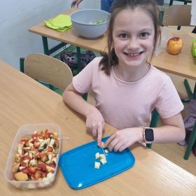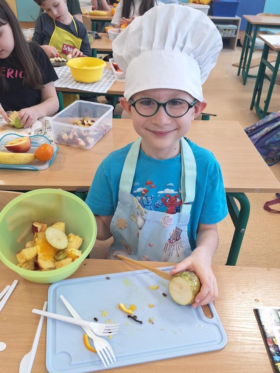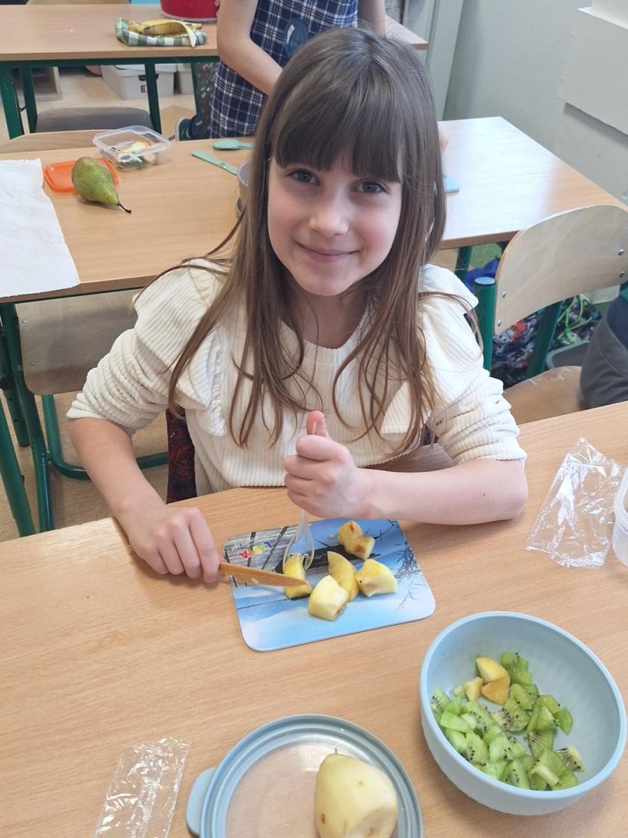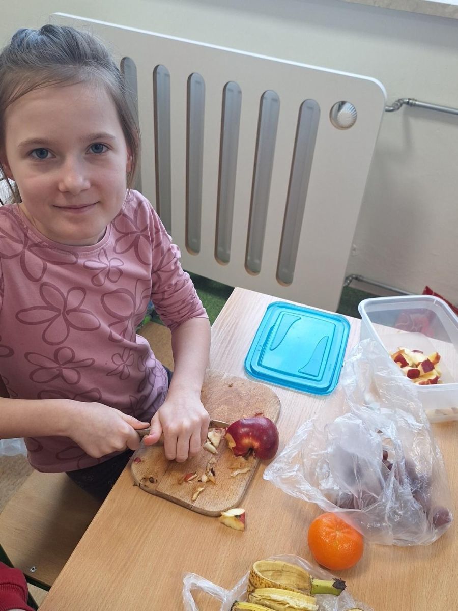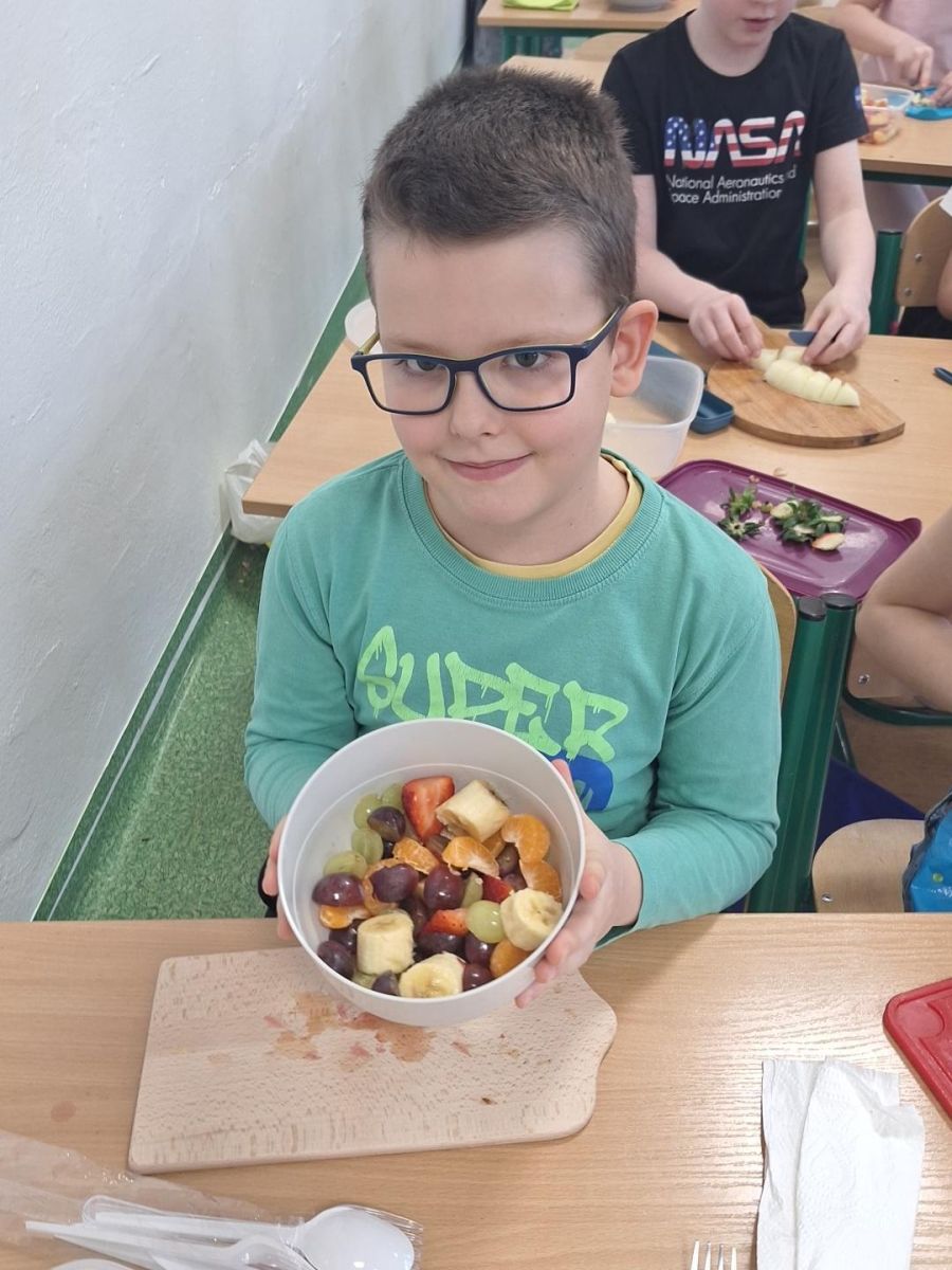Zajęcia te były jednocześnie podsumowaniem bloku tematycznego „Bądźmy zdrowi”, w ramach którego uczniowie poznawali zasady zdrowego odżywiania i dbania o własne zdrowie. Wykonanie sałatki owocowej stało się doskonałą okazją do praktycznego utrwalenia zdobytej wiedzy o wartościach odżywczych świeżych owoców oraz znaczeniu różnorodnej diety.