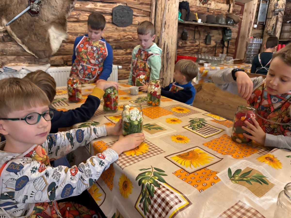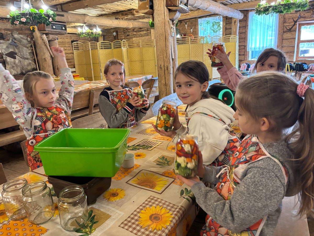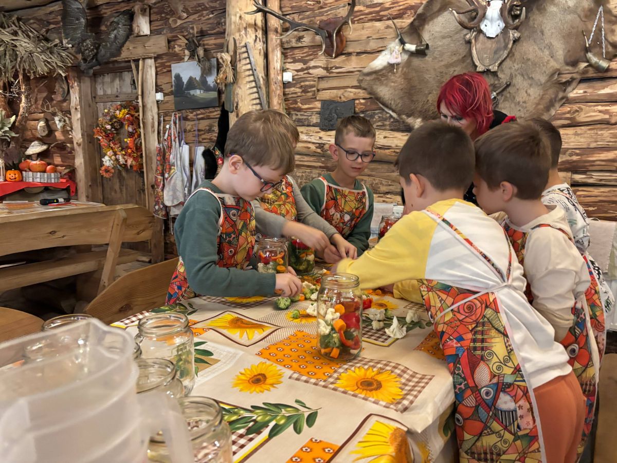 Podczas warsztatów uczniowie kisili warzywa, które następnie zabrali do domu. Wzięli także udział w pieczeniu i degustacji ciastek jabłkowych, a na pamiątkę wykonali liście ze sznurka techniką makramy. Nie zabrakło również zabaw ruchowych przy muzyce i poczęstunku, który dodał wszystkim energii do dalszej zabawy.