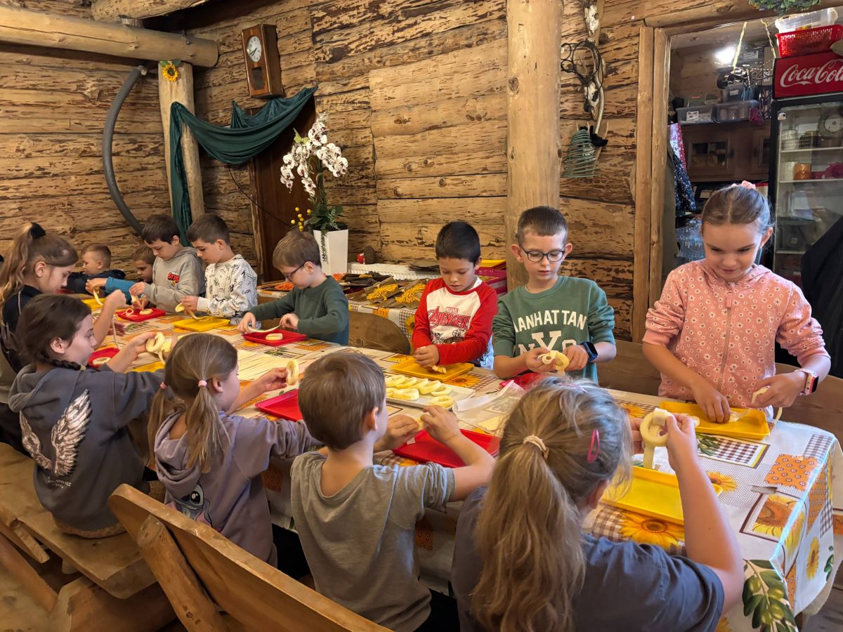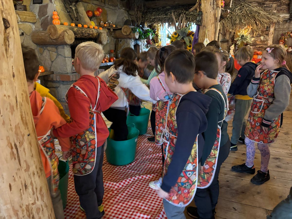 30 października 2025 r. uczniowie klas 2a i 2c wybrali się na wycieczkę do Gospodarstwa Agroturystycznego „Wiśniowe Wzgórze” w Dębnie. Tematem wyjazdu był program „Wiejski Master Szef – Smaki i barwy jesieni”, który pozwolił dzieciom odkryć uroki życia na wsi oraz spróbować swoich sił w roli małych kucharzy i artystów.