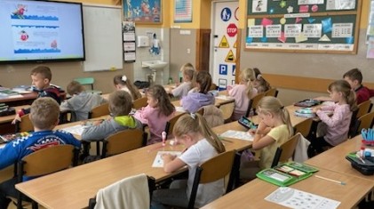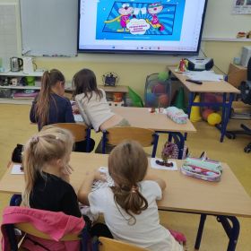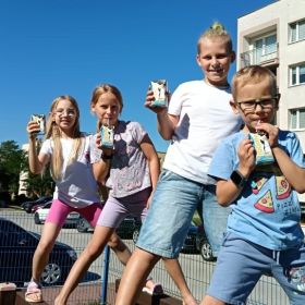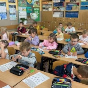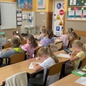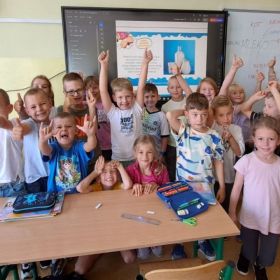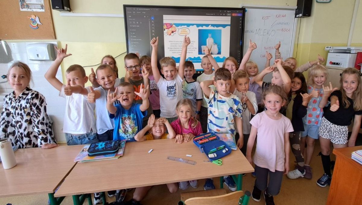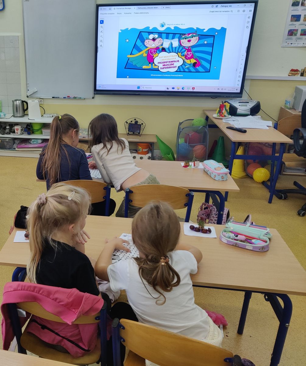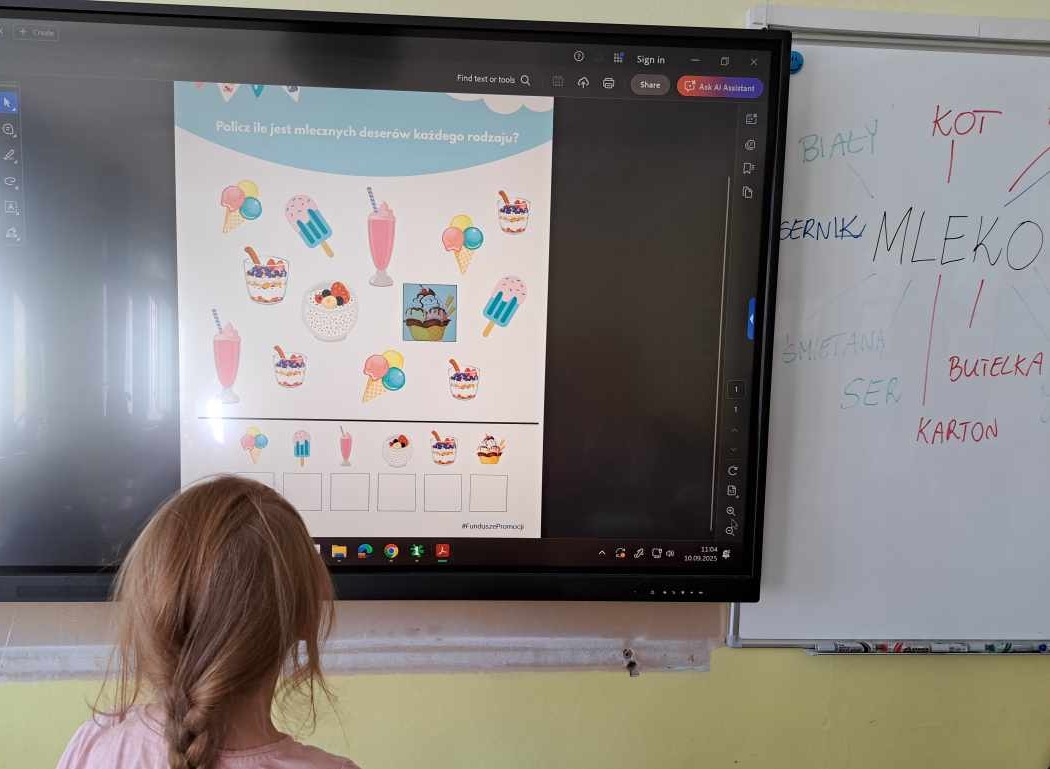 Wrzesień 2025r. upłynął uczniom klas I-III pod znakiem aktywnego udziału w programie edukacyjnym “Mamy kota na punkcie mleka”, którego głównym celem jest kształtowanie u najmłodszych prawidłowych nawyków żywieniowych ze szczególnym uwzględnieniem mleka i jego przetworów. Podczas zajęć dzieci miały okazję dowiedzieć się m.in. jakie wartości odżywcze ma mleko, dlaczego warto jeść ser żółty, a także inne produkty mleczne. Uczniowie degustowali poszczególne produkty mleczne, rozwiązywali ciekawe zagadki i łamigłówki tematyczne oraz utrwalali zdobytą wiedzę w oparciu o karty pracy oraz interaktywne zadania na tablicy multimedialnej. Ponadto, program “Mamy kota...”, realizowany w naszej szkole już od lat, cyklicznie kieruje do uczniów interesujące konkursy, w których dzieci chętnie biorą udział- z licznymi sukcesami.