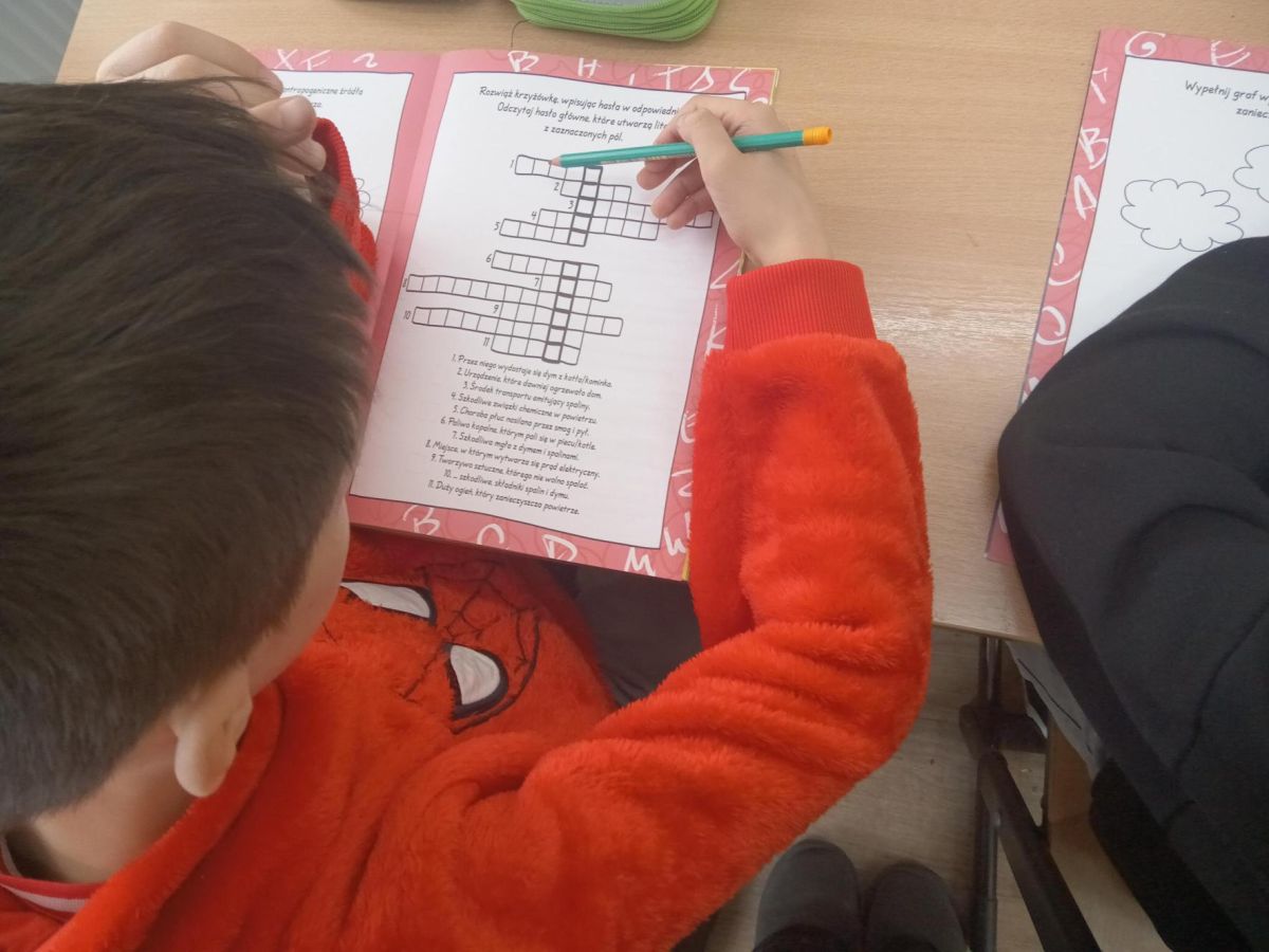 Zajęcia w klasach rozpoczęły się prezentacją krótkiego filmu edukacyjnego, który w ciekawy sposób przedstawił najważniejsze zagadnienia dotyczące powietrza i jego ochrony. Następnie uczniowie zapoznali się z treścią zeszytu ćwiczeń otrzymanego od organizatora akcji. Zawarte w nim informacje oraz różnorodne zadania — uzupełnianie wierszyków, łączenie obrazków, wykreślanki i kolorowanki — pozwoliły usystematyzować oraz utrwalić zdobytą wiedzę.