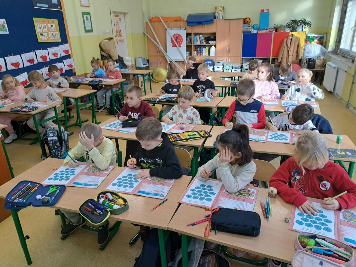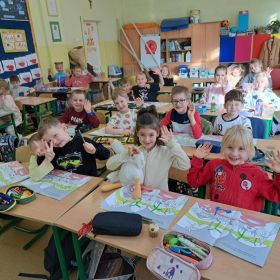 Na podsumowanie lekcji dzieci rozwiązywały ćwiczenia interaktywne, a chętni uczniowie przygotowali tematyczne prace plastyczne.