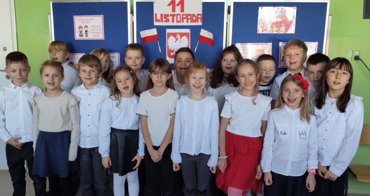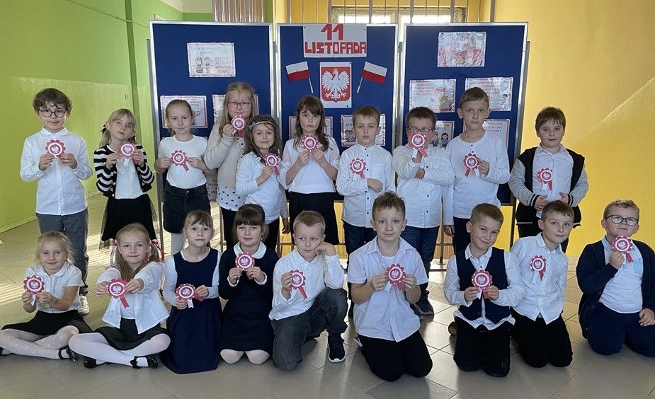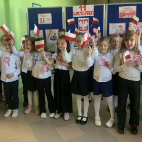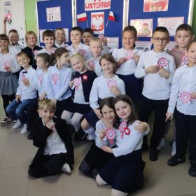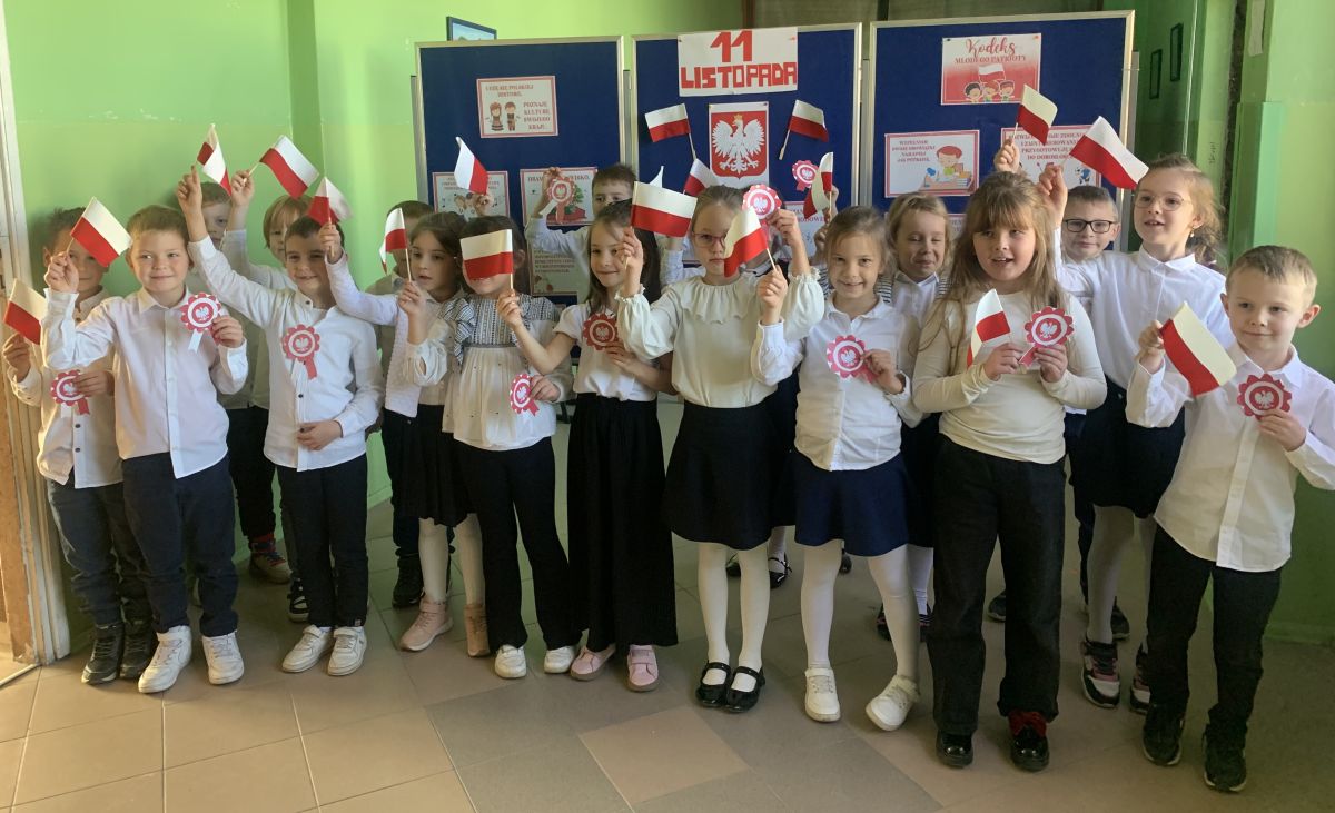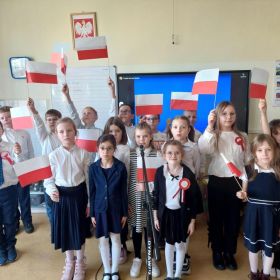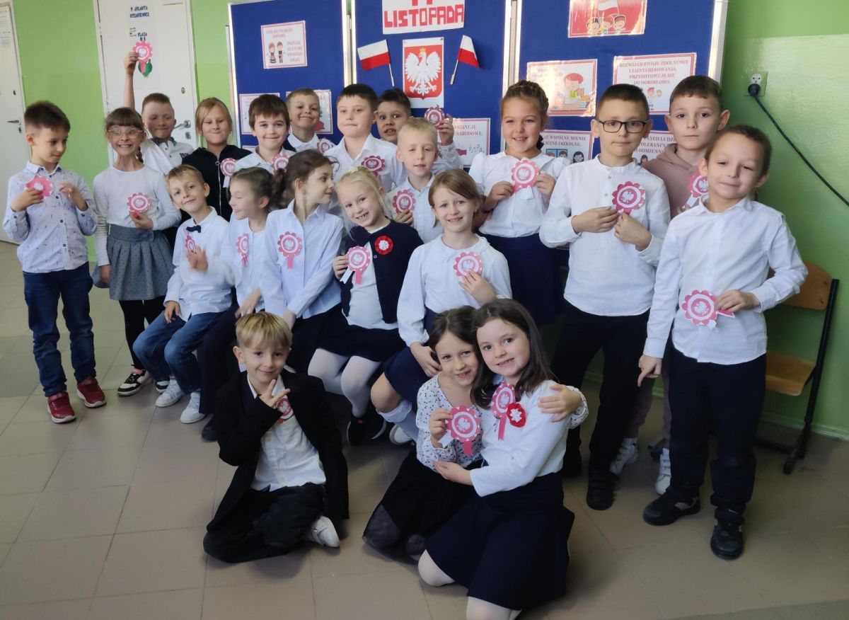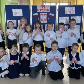 Uczniowie klas I-III pierwszy tydzień listopada poświęcili na obchody Narodowego Święta Niepodległości. Dzieci obejrzały film tematyczny, z którego dowiedziały się wielu ciekawych informacji dotyczących historii naszego kraju oraz utrwaliły znajomość symboli narodowych. W podniosłej atmosferze odśpiewały hymn Polski, a także poznane pieśni patriotyczne. Wykonane zostały flagi, kotyliony i piękne, biało- czerwone wyklejanki. Zajęcia uświadomiły uczniom, że mogą o sobie myśleć i z dumą mówić: “Jestem patriotą!”.