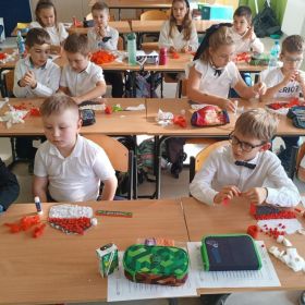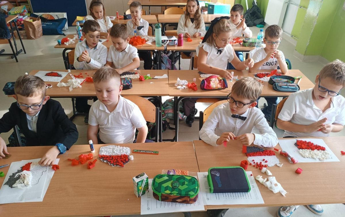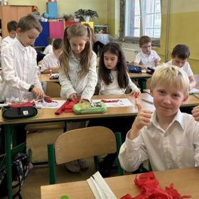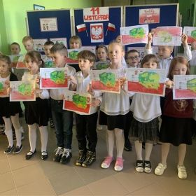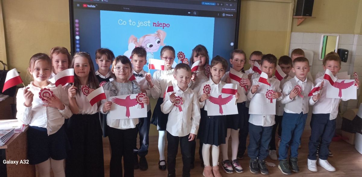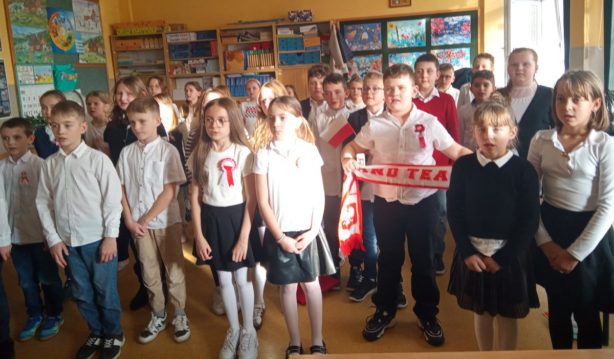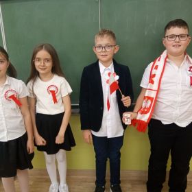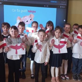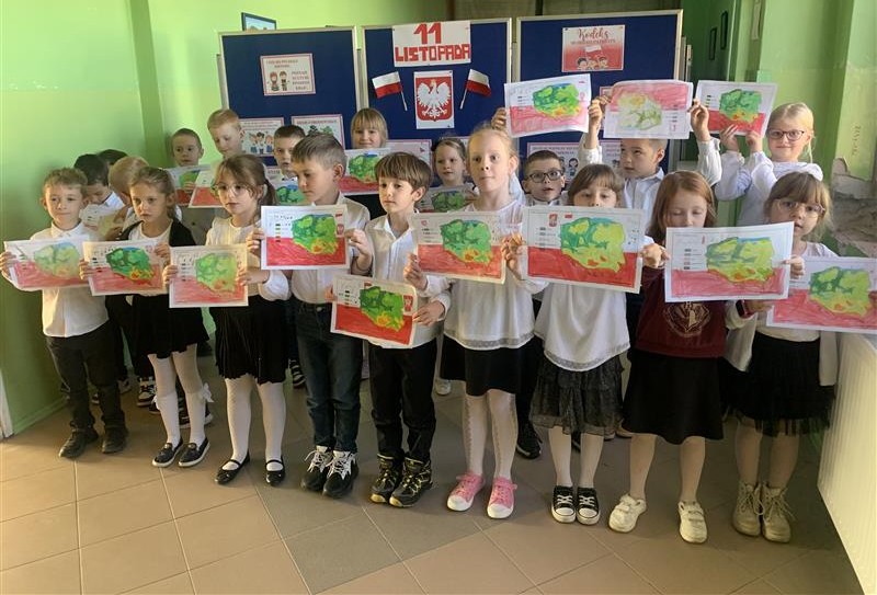 Uczniowie klas I-III pierwszy tydzień listopada poświęcili na obchody Narodowego Święta Niepodległości. Dzieci obejrzały film tematyczny, z którego dowiedziały się wielu ciekawych informacji dotyczących historii naszego kraju oraz utrwaliły znajomość symboli narodowych. W podniosłej atmosferze odśpiewały hymn Polski, a także poznane pieśni patriotyczne. Wykonane zostały flagi, kotyliony i piękne, biało- czerwone wyklejanki. Zajęcia uświadomiły uczniom, że mogą o sobie myśleć i z dumą mówić: “Jestem patriotą!”.