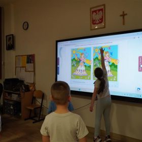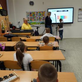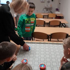 26 marca 2026 r. w SP 33 odbył się DZIEŃ OTWARTY dla rodziców i przyszłych pierwszoklasistów. Zaraz po przekroczeniu progu placówki wszyscy mali goście otrzymali kolorowe identyfikatory w formie kredek z wypisanym własnym imieniem. Spotkanie rozpoczęła pani dyrektor Marzena Tranowska, która wraz z wicedyrektor Mirosławą Skuzą i przewodniczącą Rady Rodziców p. Anną Popowicz, serdecznie powitała dzieci i ich bliskich w murach szkoły i zaprosiła do wspólnej zabawy. Następnie przedszkolaki zostały podzielone na 6 grup i w ten oto sposób rozpoczęła się podróż, podczas której na gości czekały rozmaite niespodzianki. Pierwszym etapem szkolnej wędrówki była sala gimnastyczna, gdzie każde dziecko mogło sprawdzić swoje umiejętności sprawnościowe na specjalnie przygotowanym torze przeszkód, a także wziąć udział w zabawie z ringo czy kolorowymi piłeczkami. Potem dzieci przeszły do sali, w której próbowały swoich sił, grając na dzwonkach chromatycznych znane melodie. Wędrując po szkole, dzieci chętnie brały udział w edukacyjnych grach online z wykorzystaniem tablicy multimedialnej, wykonały samodzielnie prace plastyczne, a także świetnie bawiły się podczas ciekawych zajęć sensoryczno–manualnych. Dużym zainteresowaniem cieszyły się kolorowe eksperymenty, pokaz preparatów z wykorzystaniem lup, mikroskopów czy wizualizerów. Dużo radości sprawiło maluchom kodowanie i programowanie przy użyciu robotów w ramach projektu Laboratoria Przyszłości. Świetlica zaprosiła przedszkolaków do licznych, atrakcyjnych zabaw muzyczno– ruchowych i plastycznych. Podczas zwiedzania szkoły można było obejrzeć ekspozycje interesujących prac uczniów, podziwiać osiągnięcia sportowe w postaci licznych pucharów i medali, a także zapoznać się z pokazem slajdów przedstawiającym najciekawsze wydarzenia z życia naszej placówki. Rodzice mieli możliwość uzyskania odpowiedzi na pytania dotyczące funkcjonowania szkoły i rekrutacji, a także zapoznać się z bogatą ofertą zajęć pozalekcyjnych, w tym w ramach pomocy psychologiczno-pedagogicznej.