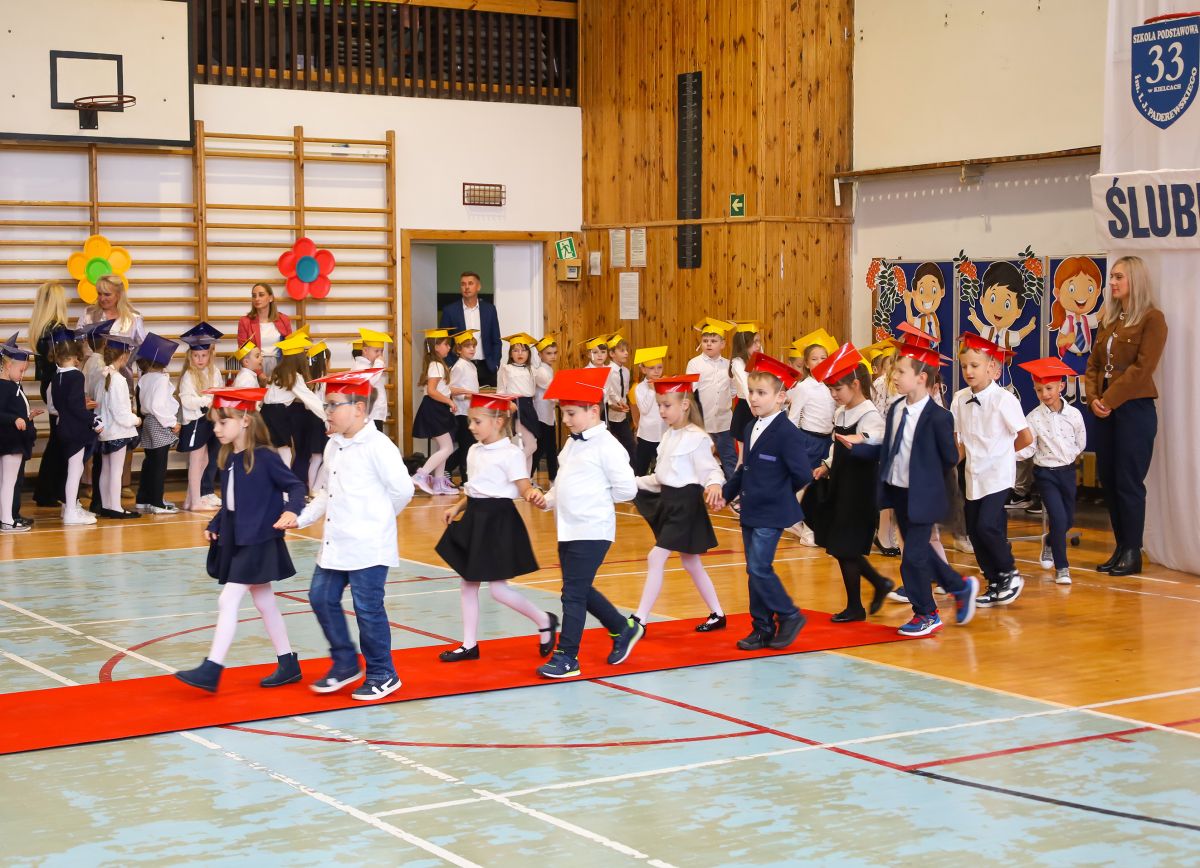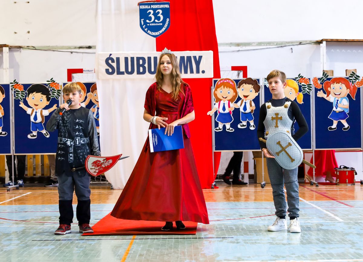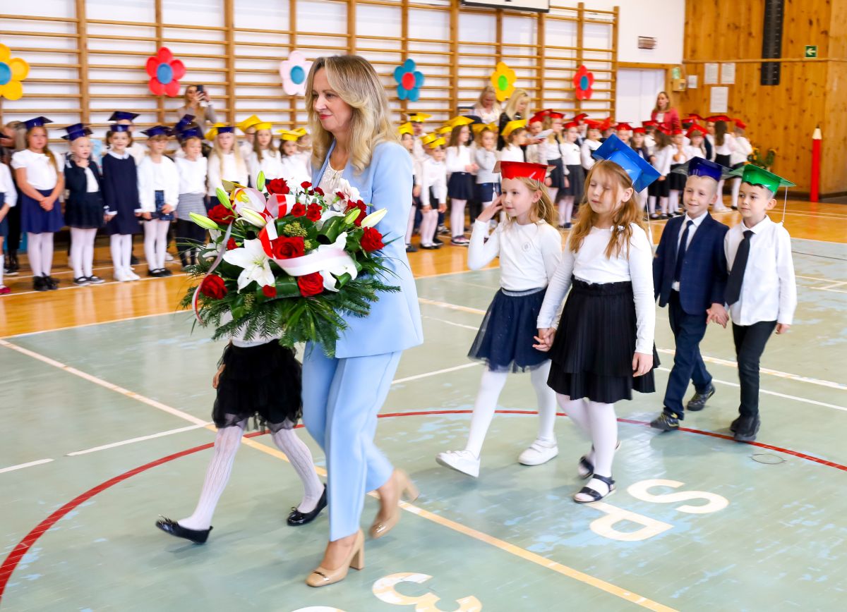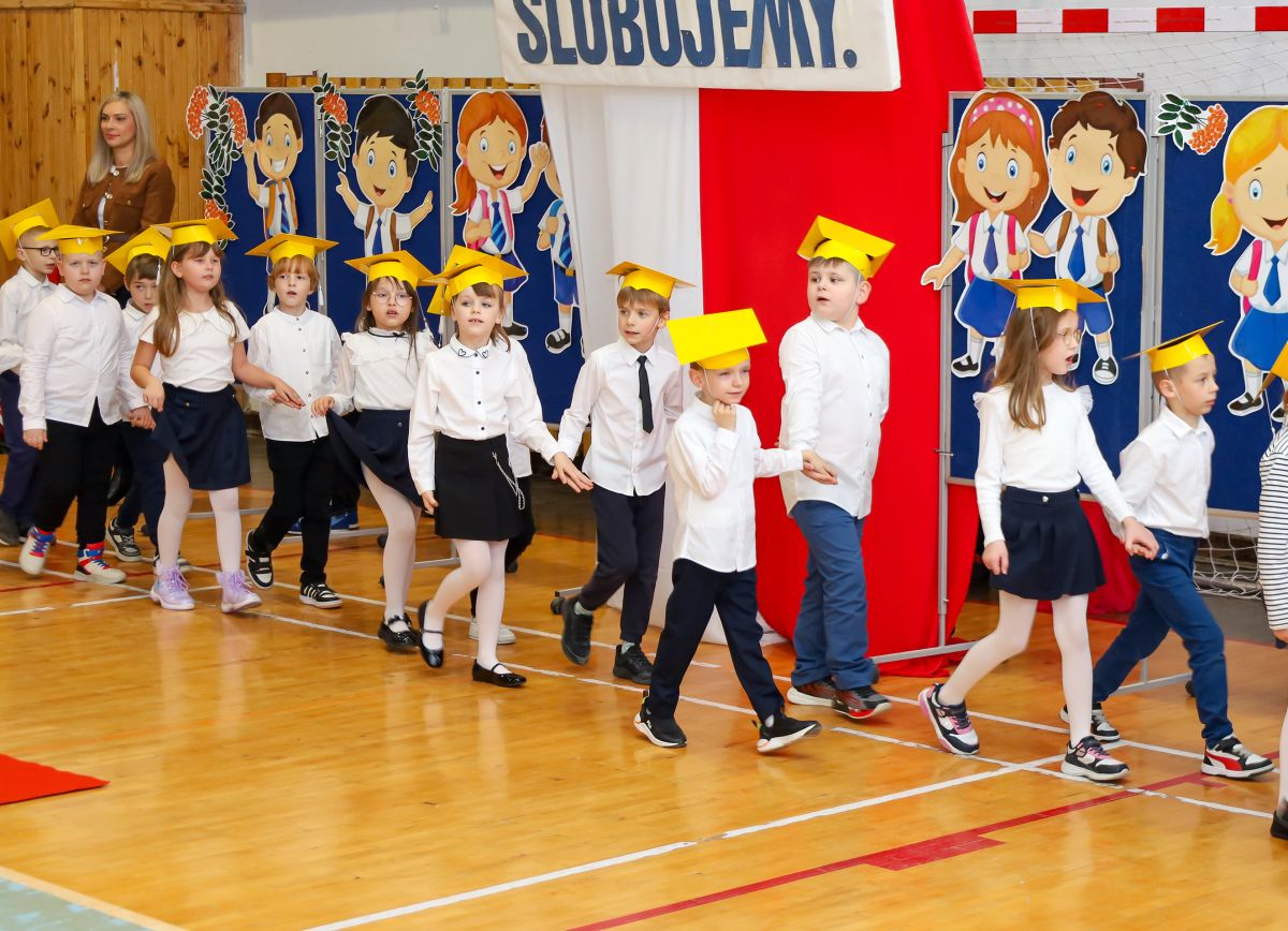 Uroczystość rozpoczęła się od pięknego poloneza – polskiego tańca narodowego w wykonaniu najmłodszych uczniów. Następnie pierwszoklasiści zaprezentowali swoje umiejętności wokalne i recytatorskie, wzbudzając podziw i wzruszenie wśród zebranych.