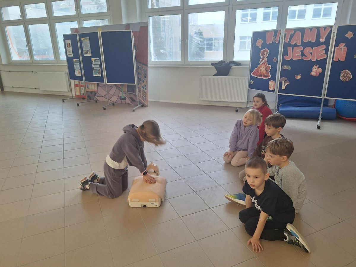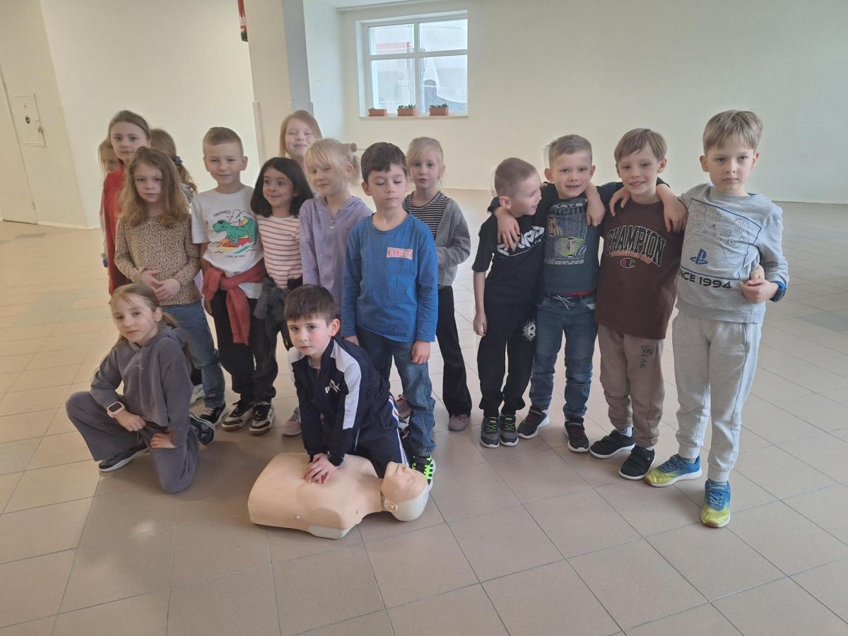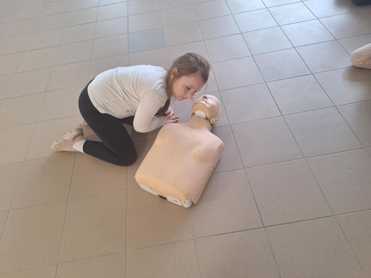 9 lutego 2026 r. w klasie 1e odbyły się zajęcia z udzielania pierwszej pomocy w ramach programu edukacyjnego „Ratujemy i Uczymy Ratować”. Uczniowie poznali podstawowe zasady reagowania w sytuacjach zagrożenia, dowiedzieli się, jak wezwać pomoc oraz jak ocenić stan osoby poszkodowanej. Dzieci ćwiczyły także wykonywanie ucisków klatki piersiowej na fantomach, ucząc się prawidłowej techniki resuscytacji. Była to bardzo ważna lekcja, która rozwija poczucie odpowiedzialności i może pomóc w ratowaniu życia. Zajęcia przeprowadziła p. Barbara Haręża.