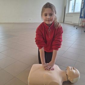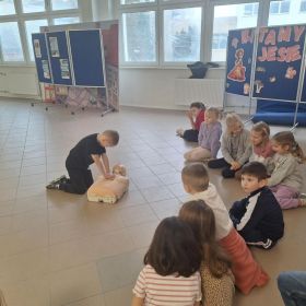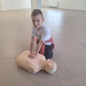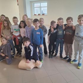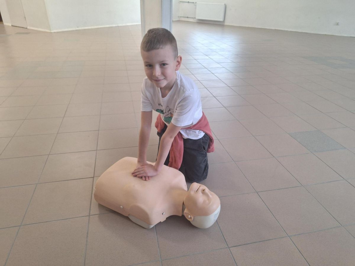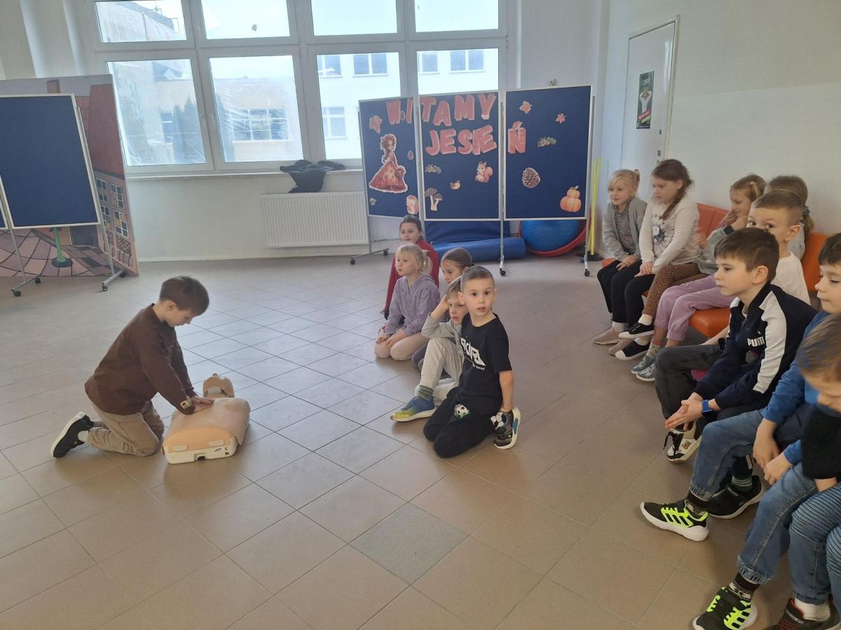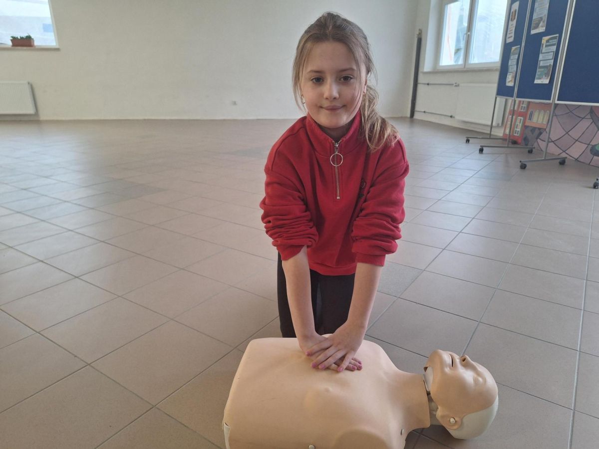 9 lutego 2026 r. w klasie 1e odbyły się zajęcia z udzielania pierwszej pomocy w ramach programu edukacyjnego „Ratujemy i Uczymy Ratować”. Uczniowie poznali podstawowe zasady reagowania w sytuacjach zagrożenia, dowiedzieli się, jak wezwać pomoc oraz jak ocenić stan osoby poszkodowanej. Dzieci ćwiczyły także wykonywanie ucisków klatki piersiowej na fantomach, ucząc się prawidłowej techniki resuscytacji. Była to bardzo ważna lekcja, która rozwija poczucie odpowiedzialności i może pomóc w ratowaniu życia. Zajęcia przeprowadziła p. Barbara Haręża.