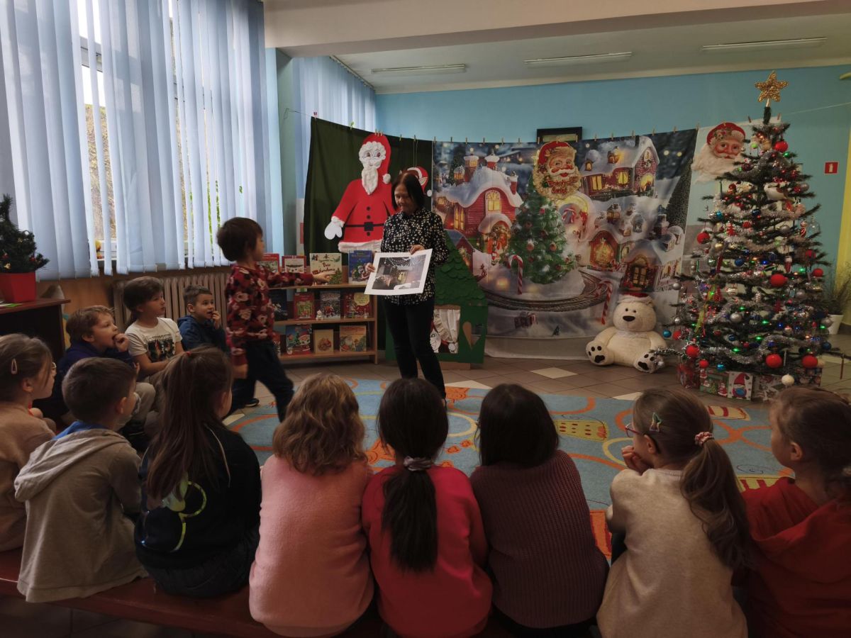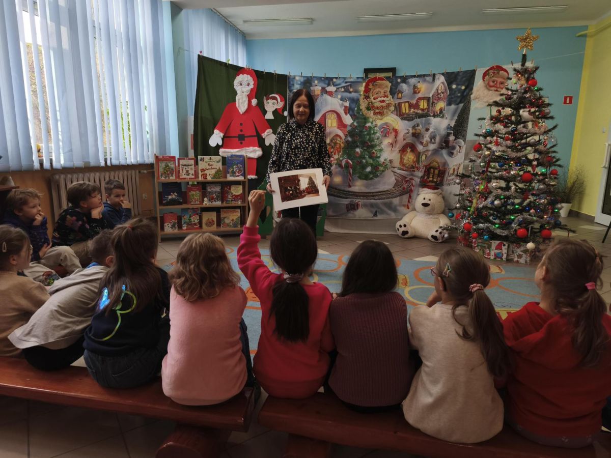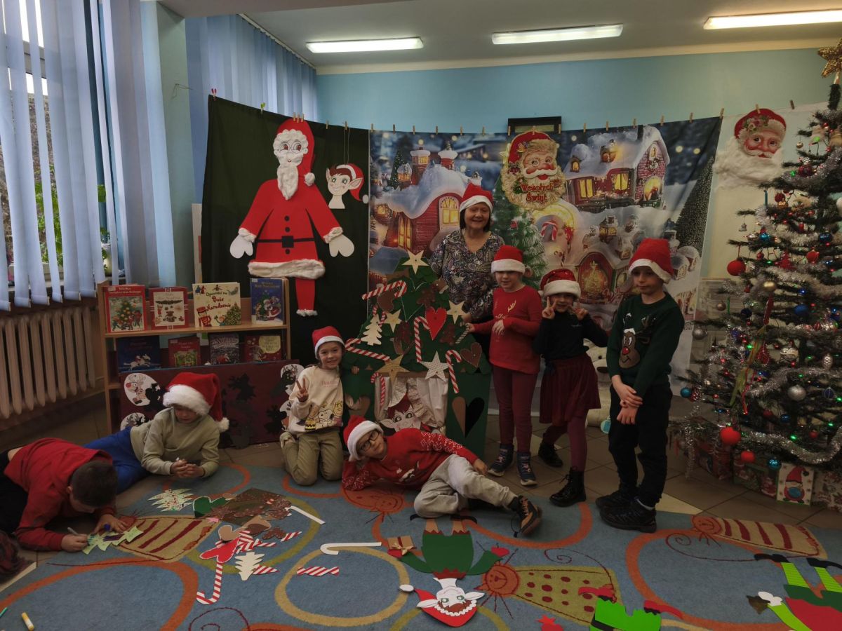 16 grudnia 2025 roku uczniowie klasy I b i I c wraz z wychowawcami oraz nauczycielami bibliotekarzami udali się do Miejskiej Biblioteki Publicznej, filia nr 11. Na miejscu czekała na nich Pani Ela, która zaprosiła uczniów na warsztaty o tradycjach Świąt Bożego Narodzenia – tych obchodzonych kiedyś oraz tych, które przetrwały do dzisiaj. Pierwszoklasiści mieli możliwość zapoznania się z obrazem świąt przedstawionych w wybranych pozycjach literatury dziecięcej. Po prezentacji zwyczajów świątecznych uczniowie rozwiązywali bożonarodzeniową krzyżówkę oraz wykonywali zadania w grupach. Spotkanie w MBP wprowadziło wszystkich w świąteczny nastrój.