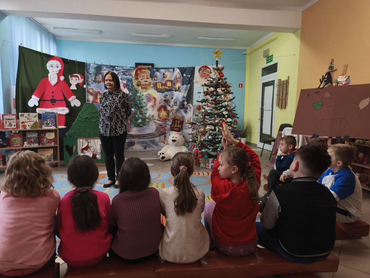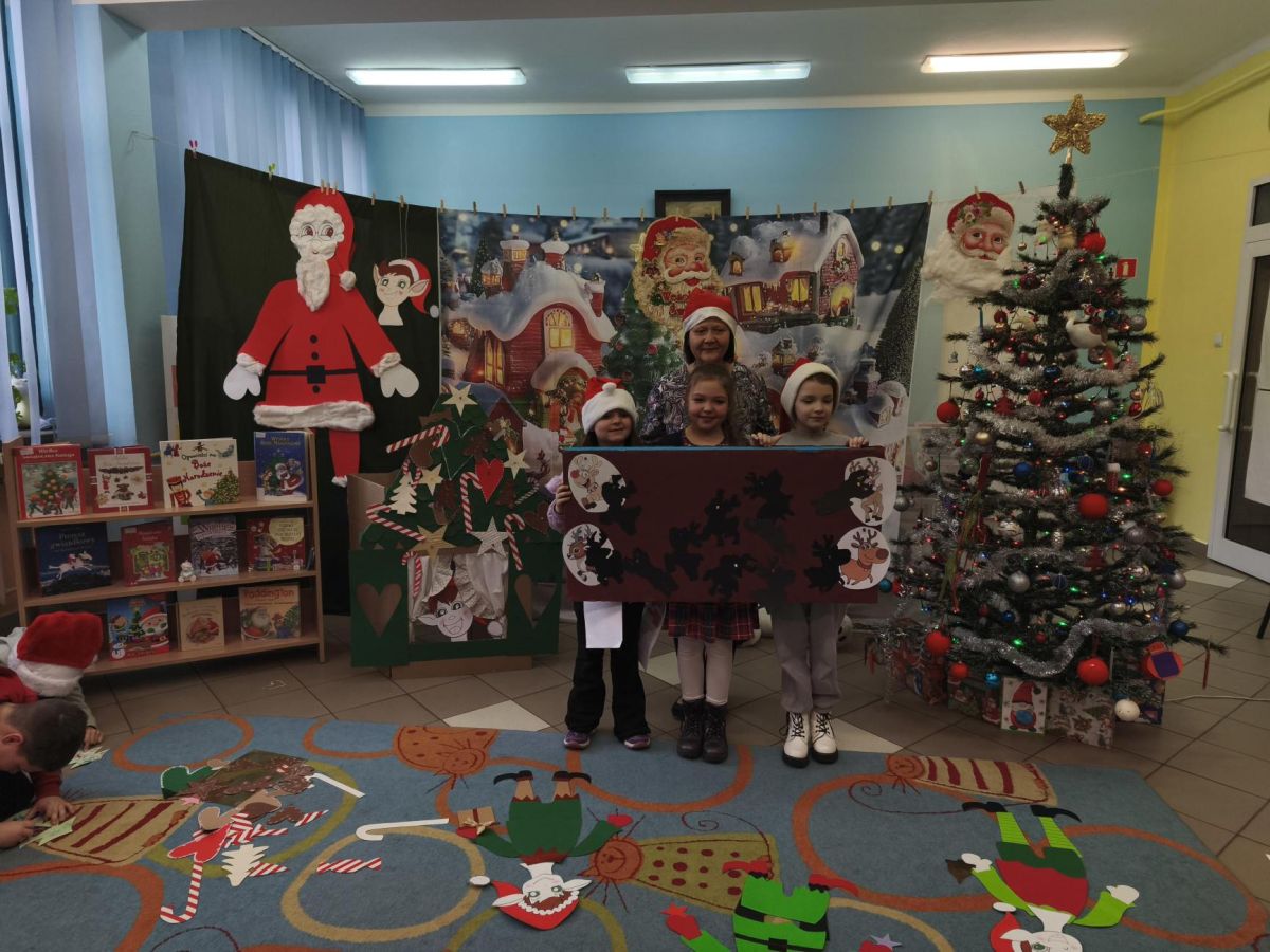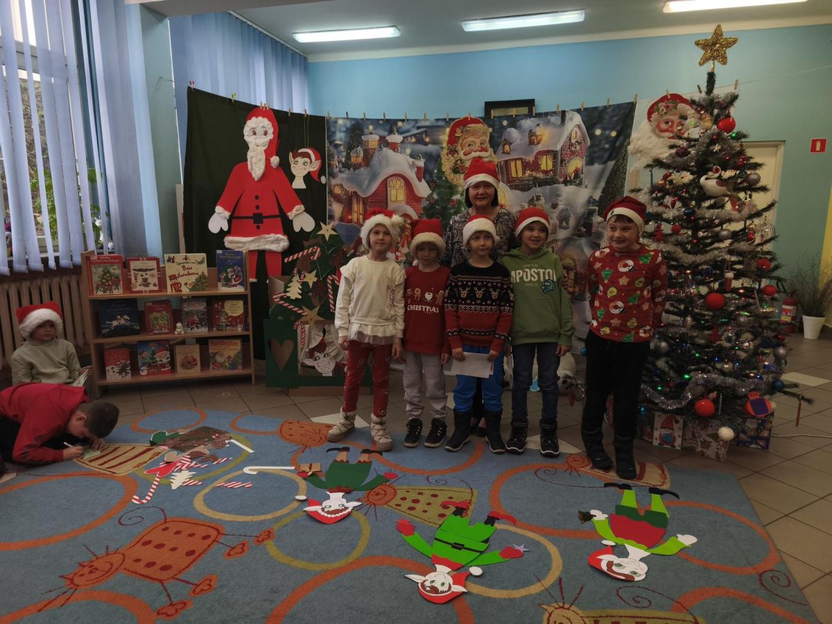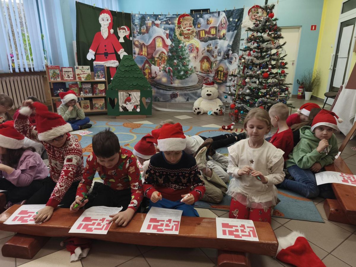 16 grudnia 2025 roku uczniowie klasy I b i I c wraz z wychowawcami oraz nauczycielami bibliotekarzami udali się do Miejskiej Biblioteki Publicznej, filia nr 11. Na miejscu czekała na nich Pani Ela, która zaprosiła uczniów na warsztaty o tradycjach Świąt Bożego Narodzenia – tych obchodzonych kiedyś oraz tych, które przetrwały do dzisiaj. Pierwszoklasiści mieli możliwość zapoznania się z obrazem świąt przedstawionych w wybranych pozycjach literatury dziecięcej. Po prezentacji zwyczajów świątecznych uczniowie rozwiązywali bożonarodzeniową krzyżówkę oraz wykonywali zadania w grupach. Spotkanie w MBP wprowadziło wszystkich w świąteczny nastrój.