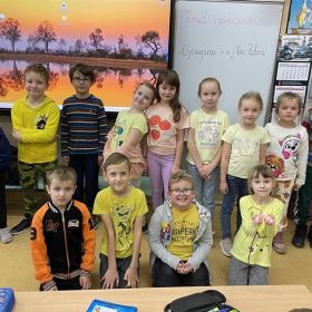 W szkole królował kolor żółty - kolor słońca, kolor kojarzący się z uśmiechem, ciepłem i życzliwością oraz pomarańczowy – kolor optymizmu, szczęścia i entuzjazmu, a dobre słowo i uśmiech gościły w każdej klasie.