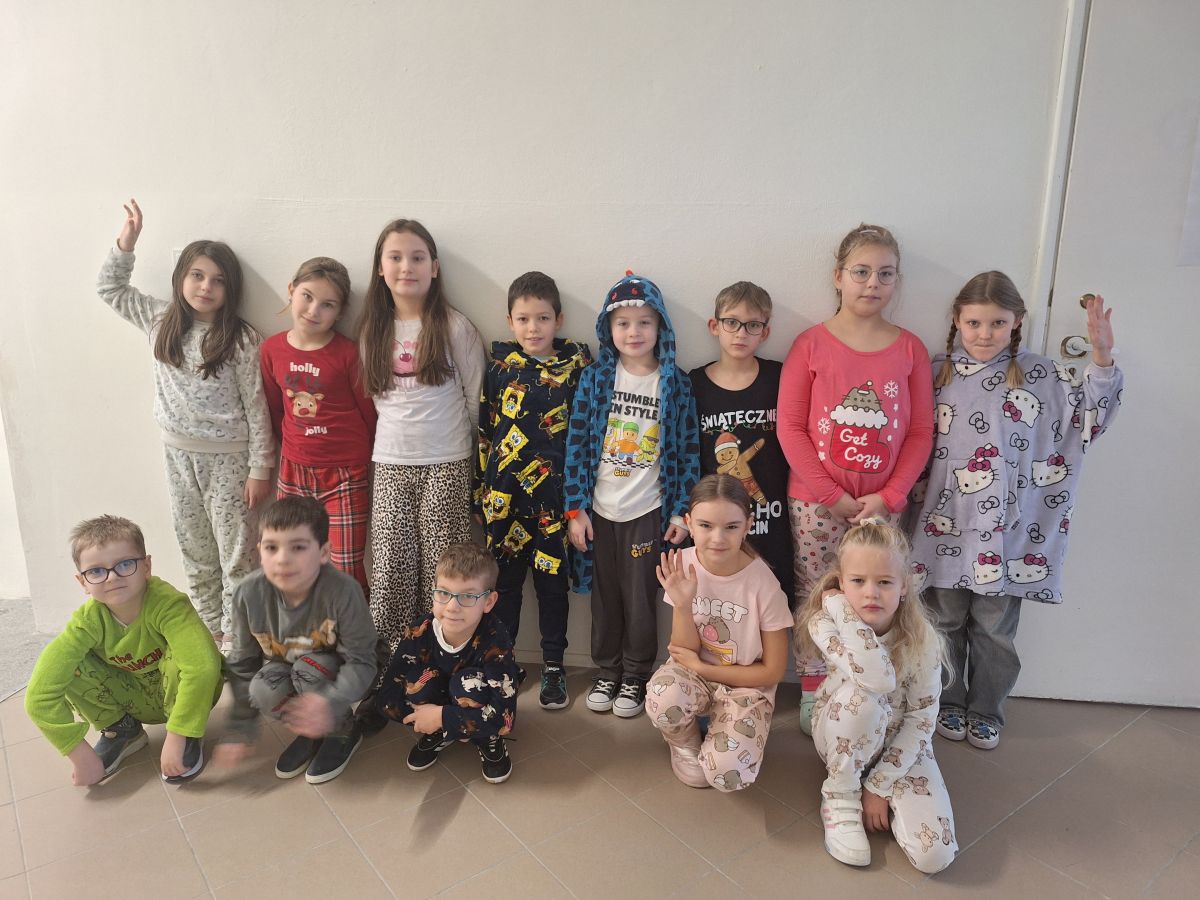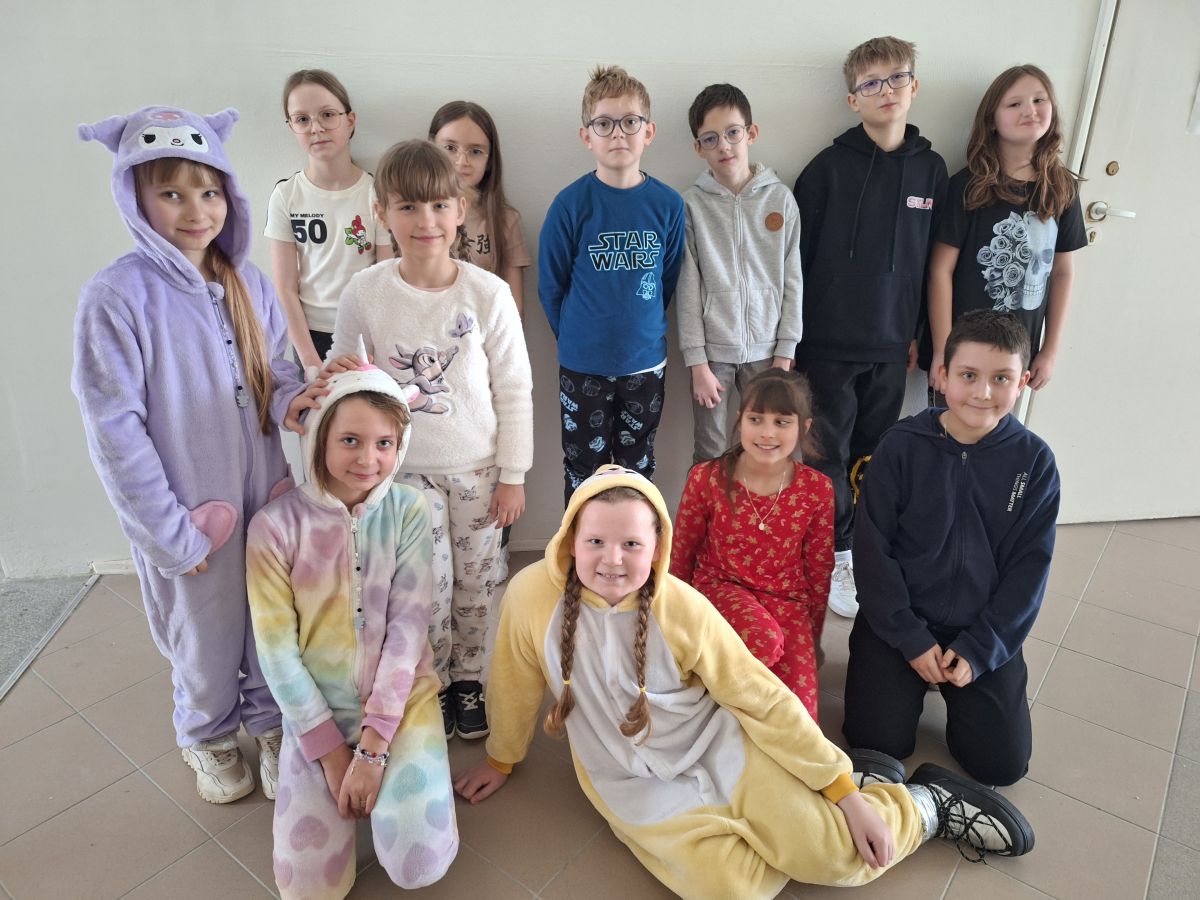 Z inicjatywy Samorządu Uczniowskiego uczniowie klas 1-3 zamienili szkolne stroje na swoje ulubione piżamy. Było mnóstwo uśmiechów i pozytywnej energii – a szkolne korytarze wyglądały jak jedna wielka piżamowa impreza!