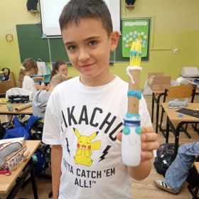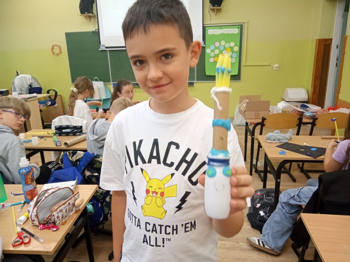 16 września 2025r. klasa III a wzięła udział w lekcji “Jak gimnastykować wyobraźnię?” w ramach projektu edukacyjnego “Mistrzowie sportu” udostępnionego przez Fundację Uniwersytet Dzieci. Podczas zajęć uczniowie poznali zasady treningu twórczego myślenia i dowiedzieli się po co i jak ćwiczyć myślenie. Trzecioklasiści wzięli udział w zabawie ruchowej “Mecz skojarzeń”, dzięki czemu mogli zauważyć, że wyobraźnia nie ma granic. Wychodząc poza schemat standardowego myślenia, stworzyli nieoczywiste, zaskakujące i zabawne przedmioty z elementów przeznaczonych do recyklingu. Zajęcia zakończyły się zabawą przy muzyce “Latające myśli”, podczas której dzieci, korzystając z szarf gimnastycznych animowały ruchem wszystko to, co przywodziły im na myśl odtwarzane fragmenty utworów muzycznych.