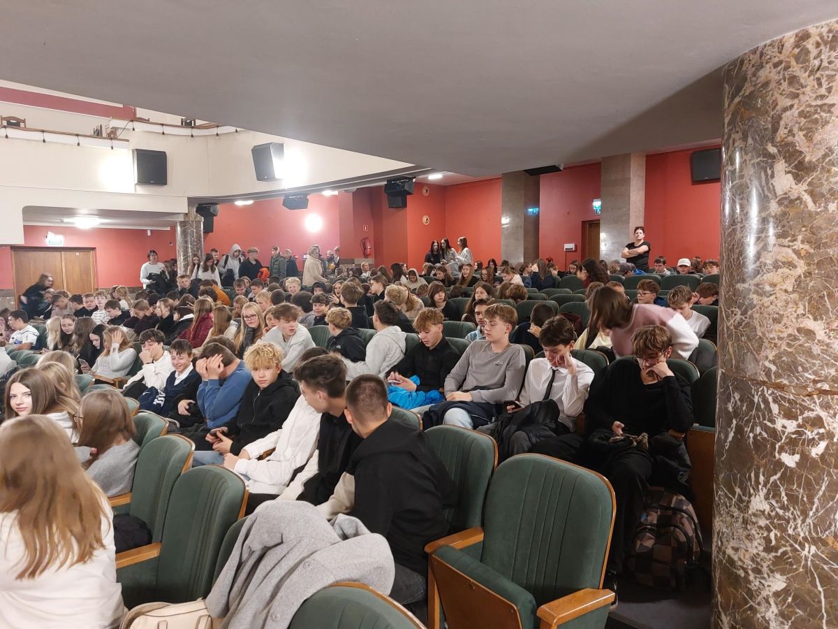 15 października 2025 r. uczniowie klas ósmych uczestniczyli w przedstawieniu teatralnym na scenie Wojewódzkiego Domu Kultury w Kielcach. Spektakl o Rudym, Alku i Zośce to nie tylko opowieść o bohaterstwie, ale przede wszystkim o sile młodzieńczej przyjaźni w czasach wojny. Multimedialna forma, sugestywna gra aktorska i przejmująca muzyka sprawiły, że widzowie śledzili losy bohaterów z zapartym tchem. Akcja pod Arsenałem, dramatyczne wybory, śmierć i pamięć – wszystko to tworzyło niezapomniane widowisko, które widzowie zapamiętają na długo.