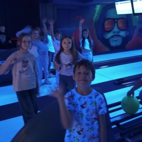 W ramach obchodów Dnia Chłopaka 26 września 2025r. klasa III a wybrała się do kręgielni w hotelu La Mar. Dzieci zostały podzielone na 4 grupy. Początkowe rzuty kulą nie były trafne, lecz z każdą kolejną próbą przewracało się coraz więcej kręgli, a na tablicy przy imionach uczestników pojawiały się upragnione punkty. Dwie godziny pasjonującej gry szybko minęły. To była świetna zabawa. Na koniec wszyscy uczestnicy wycieczki zjedli pyszny, owocowy poczęstunek