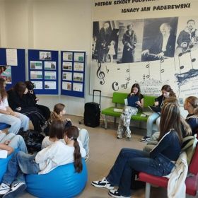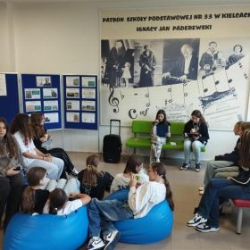 23 października 2025 r. z okazji 161. rocznicy urodzin Stefana Żeromskiego - wybitnego pisarza, publicysty, dramaturga, społecznika i patrioty, który przyszedł na świat 14 października 1864 r. w Strawczynie, uczennice z koła polonistycznego zaprosiły społeczność szkolną do wysłuchania fragmentów powieści Syzyfowe prace. Uważni słuchacze znający odpowiedzi na pytania w krótkim quizie na temat opisanej w utworze lekcji języka polskiego zostali nagrodzeni wykonanymi przez Zuzannę Osobińską z klasy VI a zakładkami inspirowanymi twórczością S. Żeromskiego.